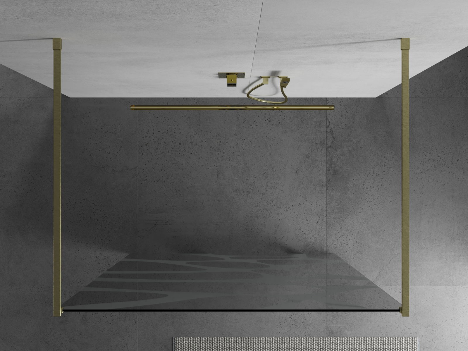 Mexen Kioto freestanding shower wall 140 x 200 cm, white wave 8 mm, brushed gold - 800-140-002-55-97