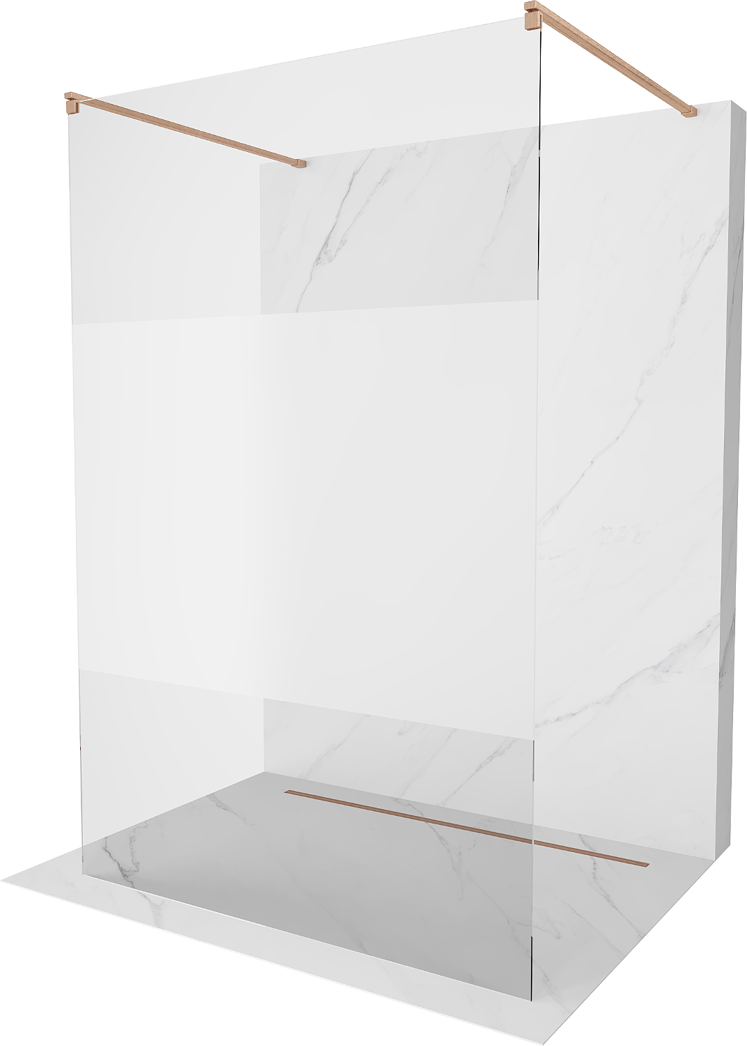 Mexen Kioto freestanding shower wall 130 x 200 cm, transparent/frosted 8 mm, brushed copper - 800-130-002-65-35