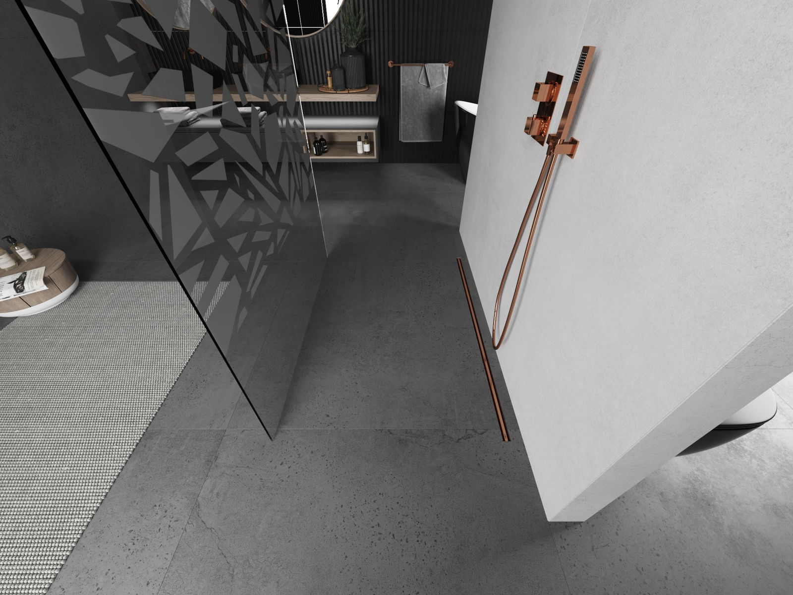 Mexen Kioto freestanding shower screen 100 x 200 cm, white pattern 8 mm, brushed copper - 800-100-002-65-85