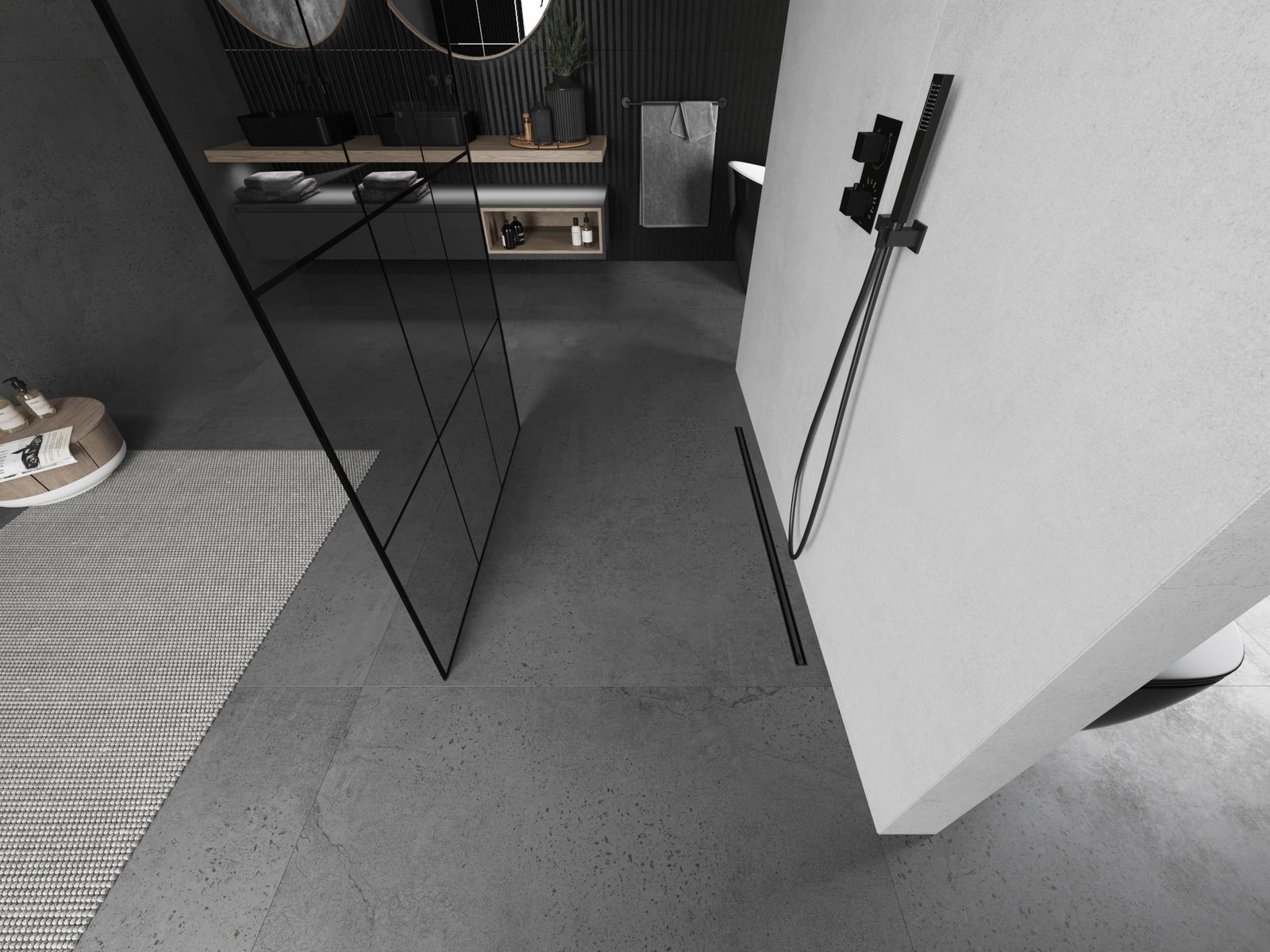 Mexen Kioto freestanding shower wall 110 x 200 cm, black mesh 8 mm, brushed gun gray - 800-110-002-66-77