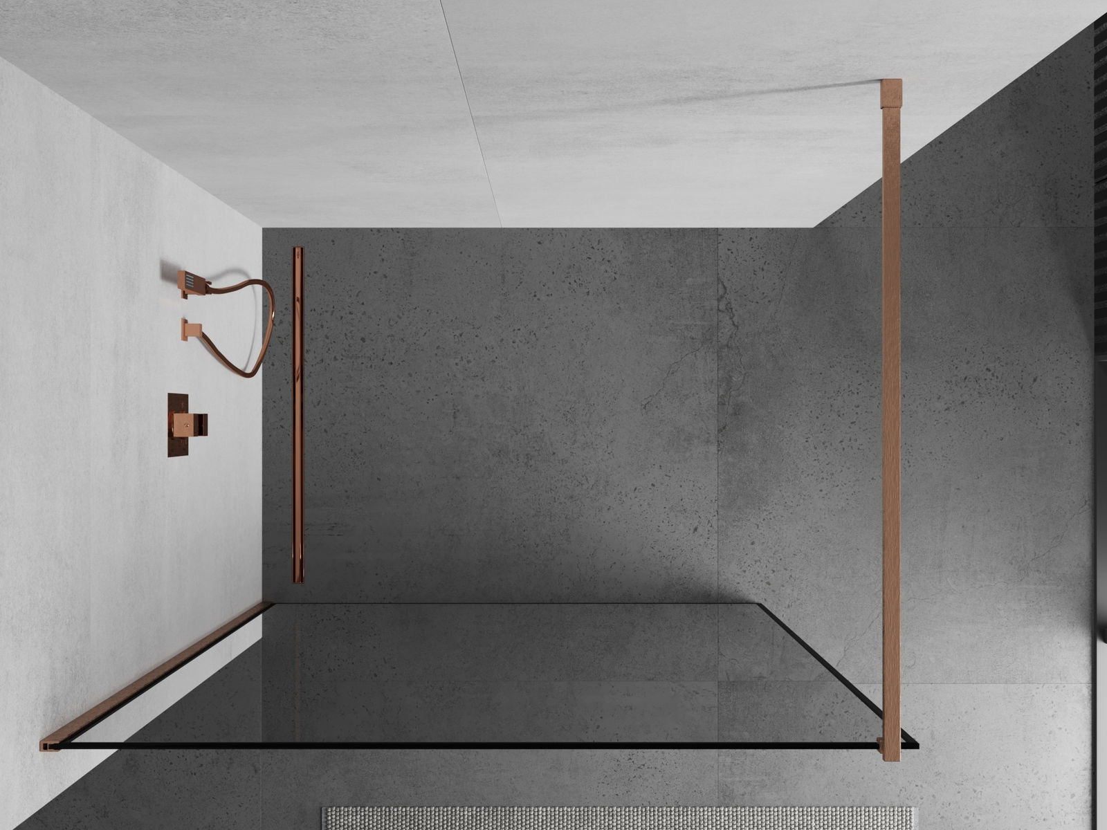 Mexen Kioto Walk-in shower wall 150 x 200 cm, black frame 8 mm, brushed copper - 800-150-101-65-70