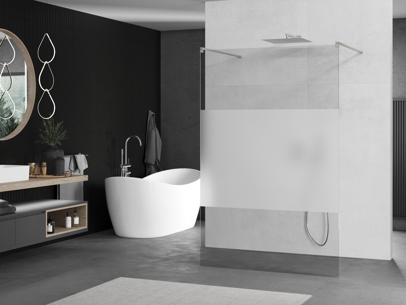 The product can be installed either on a shower tray or directly on the floor, depending on your needs. The versatile installation method allows the product to be adapted to various types of bathrooms and space configurations.