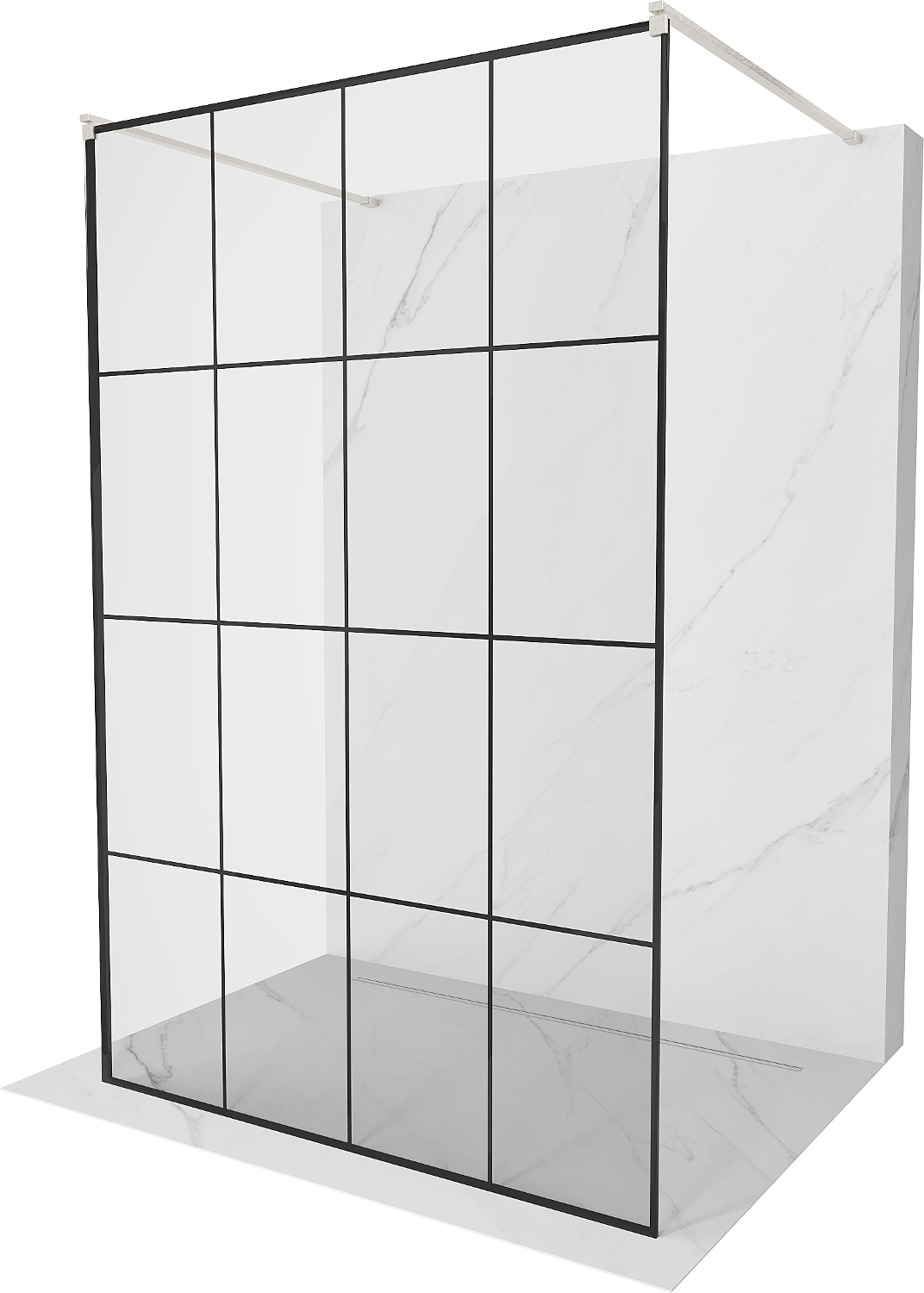 Mexen Kioto freestanding shower wall 140 x 200 cm, black grid 8 mm, brushed nickel - 800-140-002-97-77