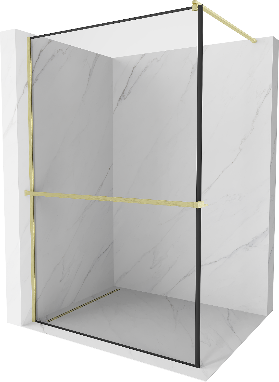 Mexen Kioto+ shower wall with shelf Walk-in 100 x 200 cm, black frame, brushed gold - 800-100-121-55-70