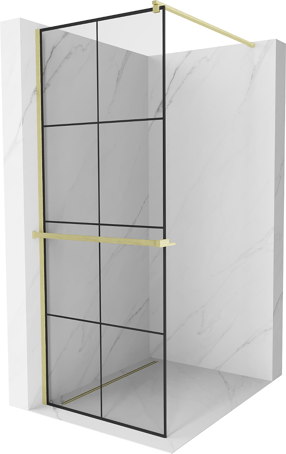 Mexen Kioto+ shower wall with shelf Walk-in 80 x 200 cm, black grid, brushed gold - 800-080-121-55-77