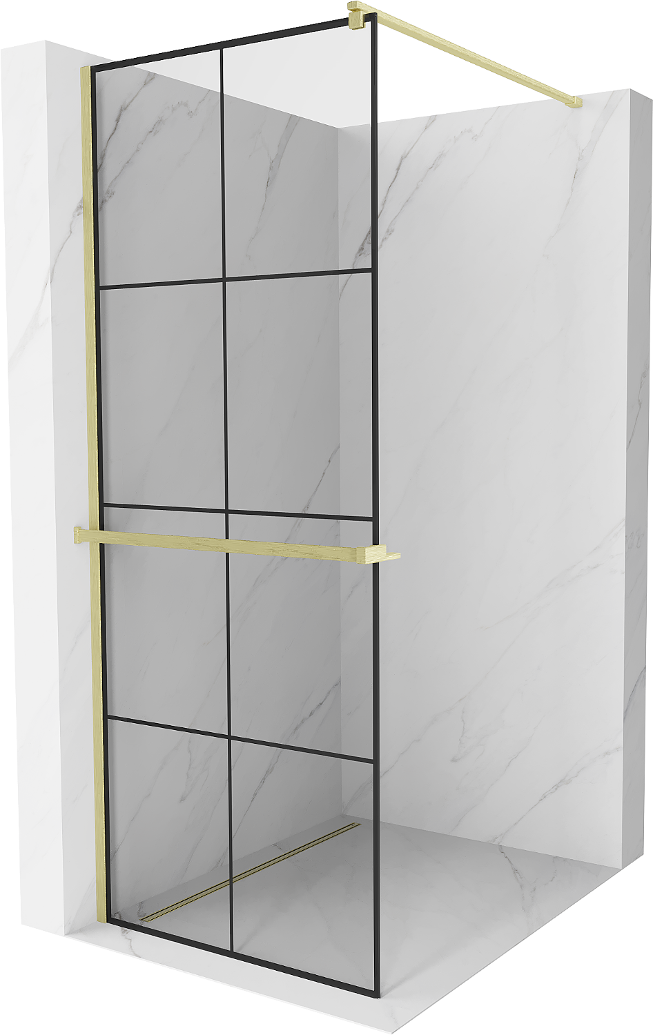 Mexen Kioto+ shower wall with shelf Walk-in 90 x 200 cm, black grid, brushed gold - 800-090-121-55-77