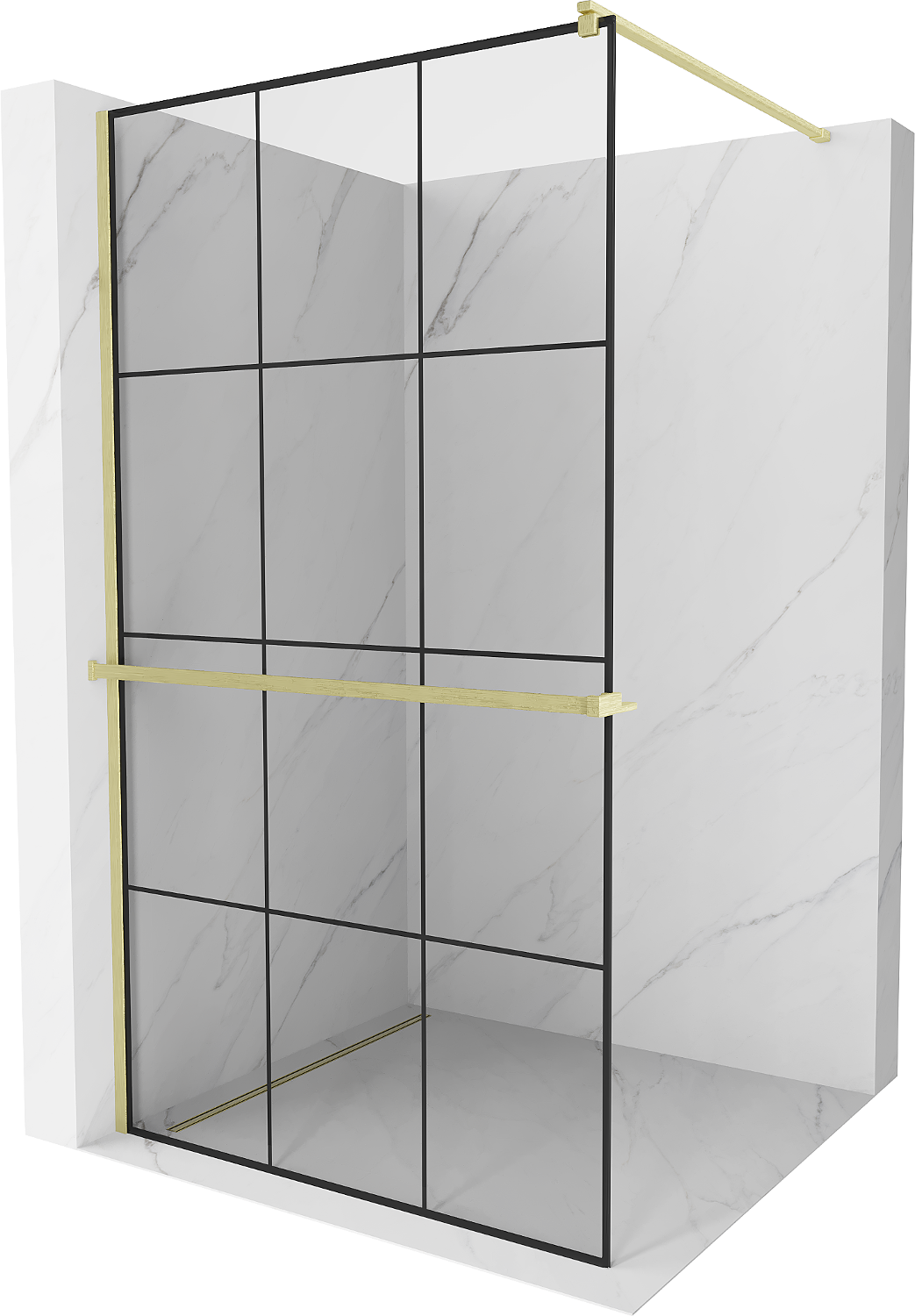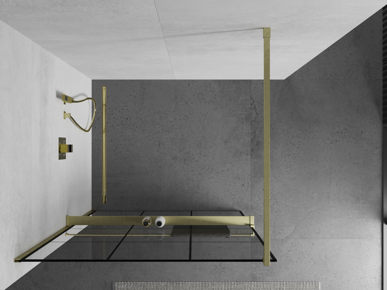 Mexen Kioto+ shower wall with shelf Walk-in 100 x 200 cm, black grid, brushed gold - 800-100-121-55-77