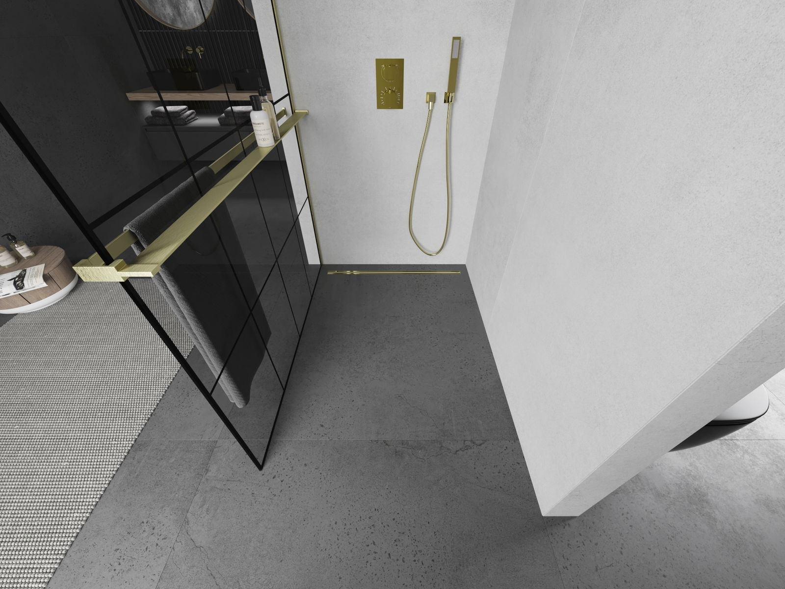 Mexen Kioto+ shower wall with a shelf Walk-in 130 x 200 cm, black grid, brushed gold - 800-130-121-55-77