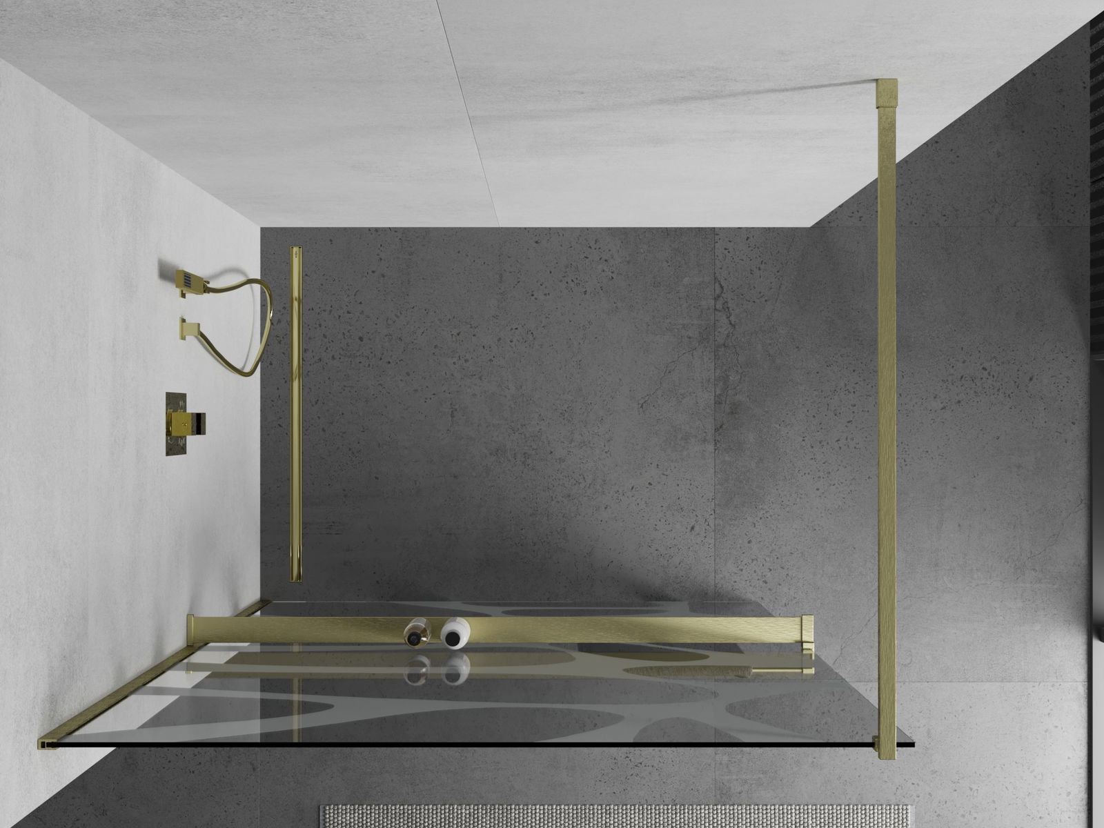 Mexen Kioto+ shower screen with shelf Walk-in 110 x 200 cm, white wave, brushed gold - 800-110-121-55-97
