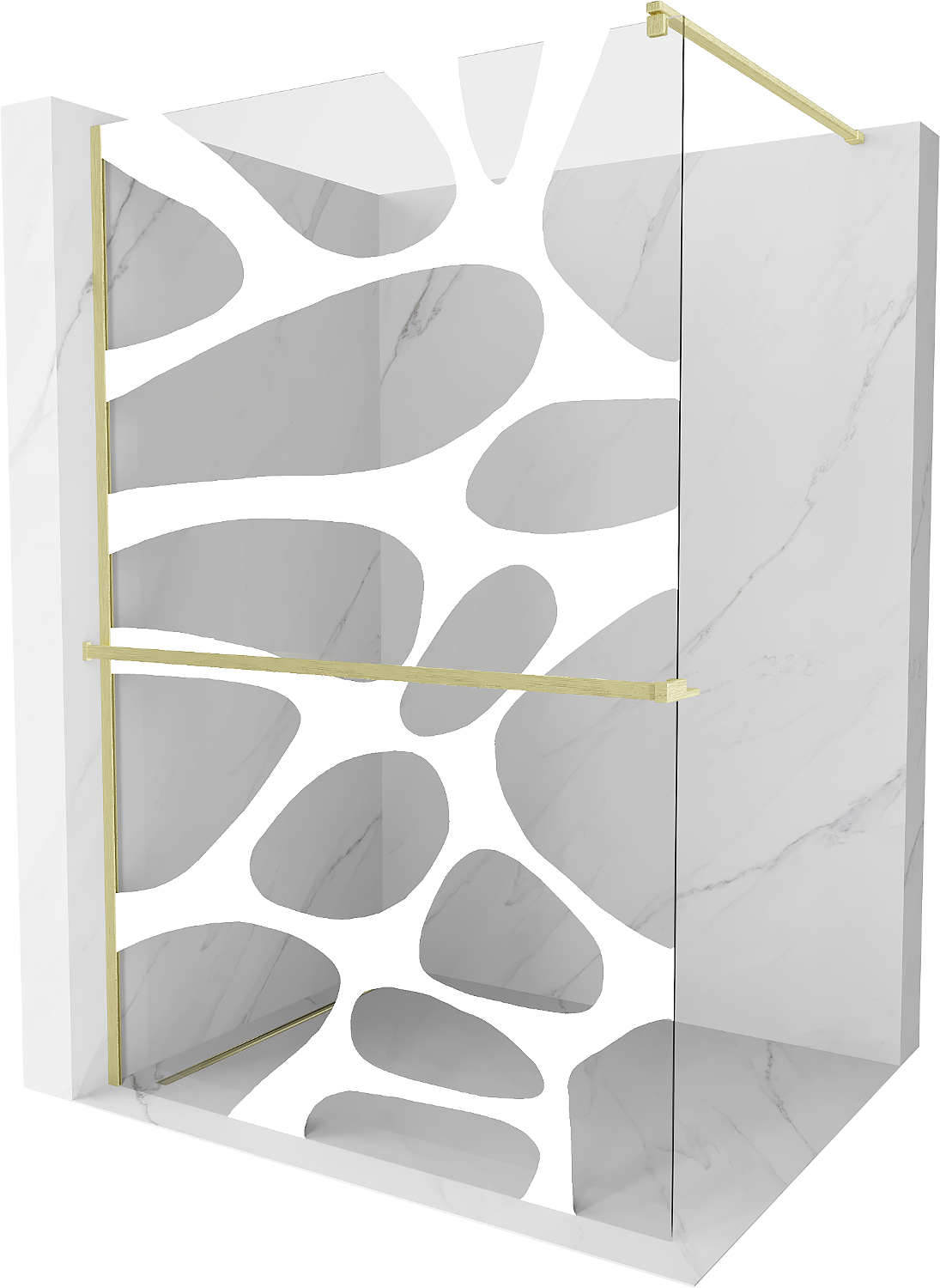 Mexen Kioto+ shower wall with shelf Walk-in 130 x 200 cm, white wave, brushed gold - 800-130-121-55-97
