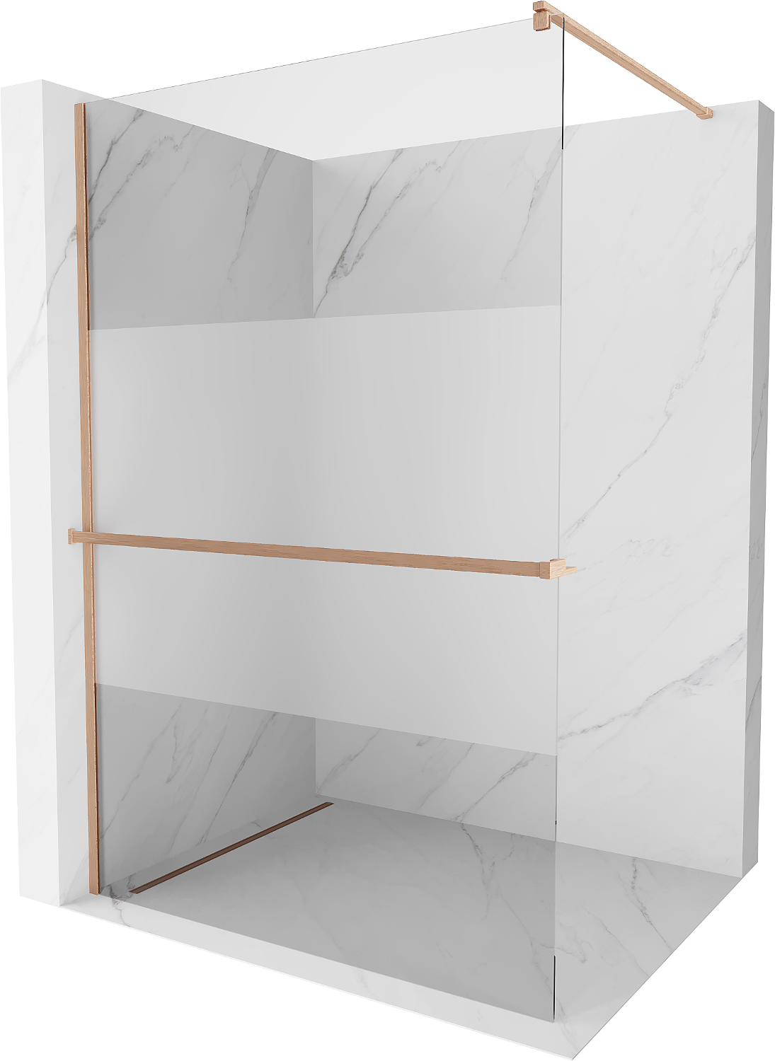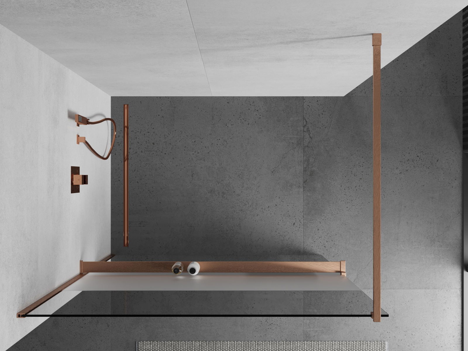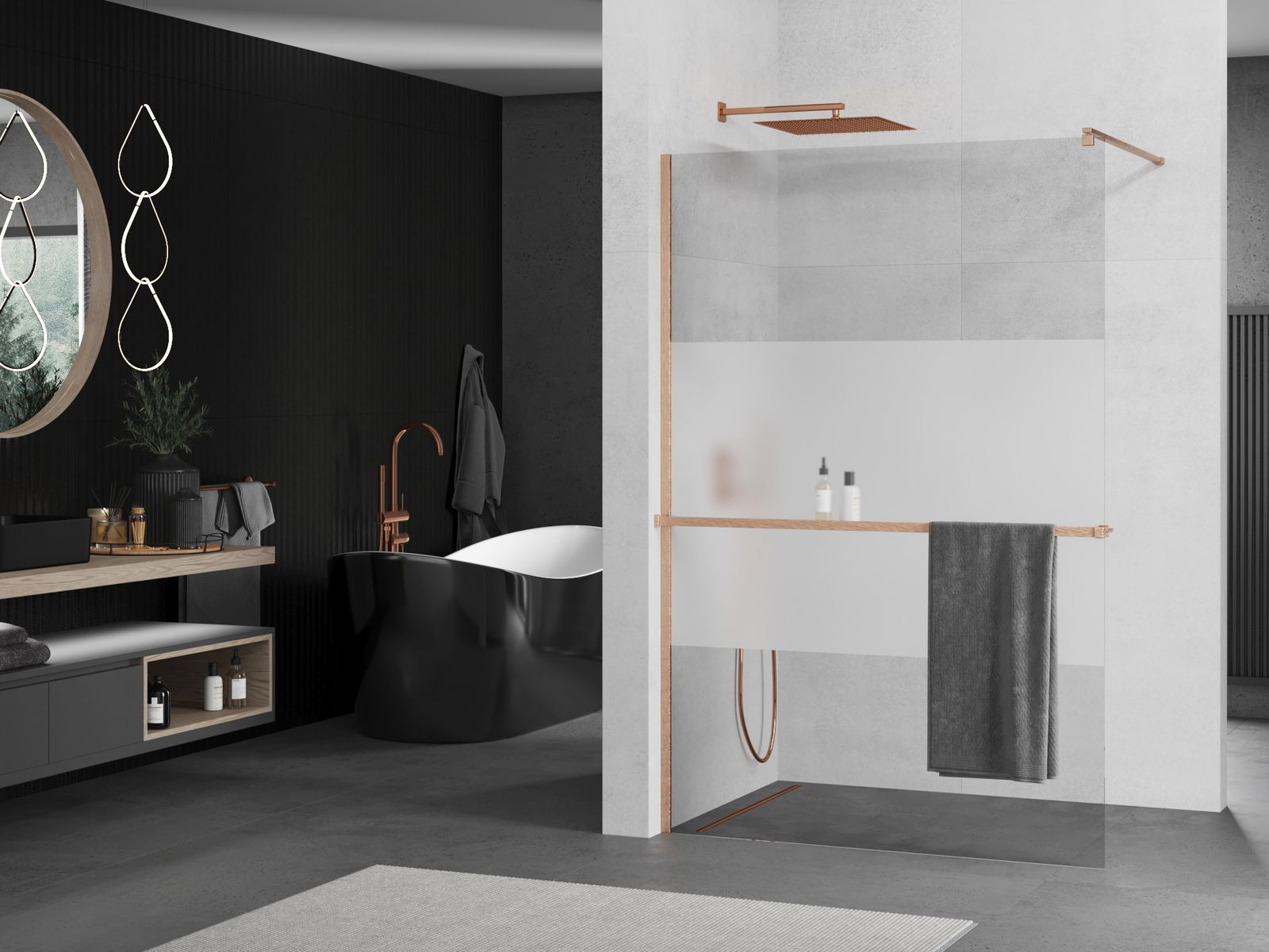Mexen Kioto+ 140 x 200 cm Walk-in Shower Wall with Shelf, Transparent/Frosted, Brushed Copper - 800-140-121-65-35