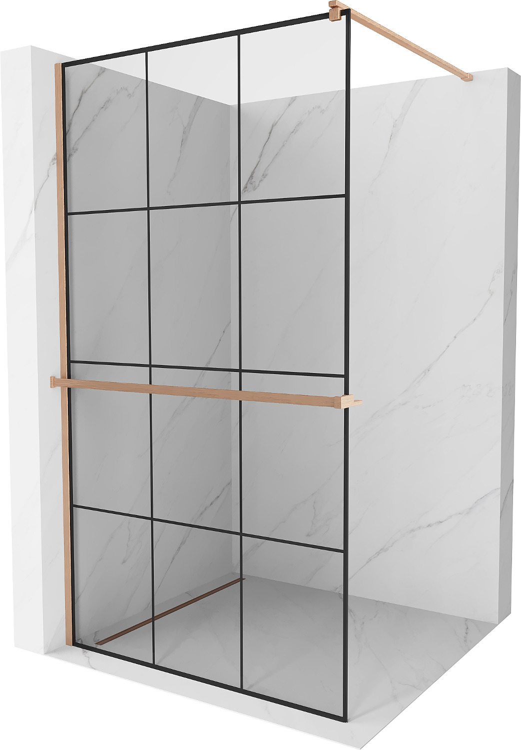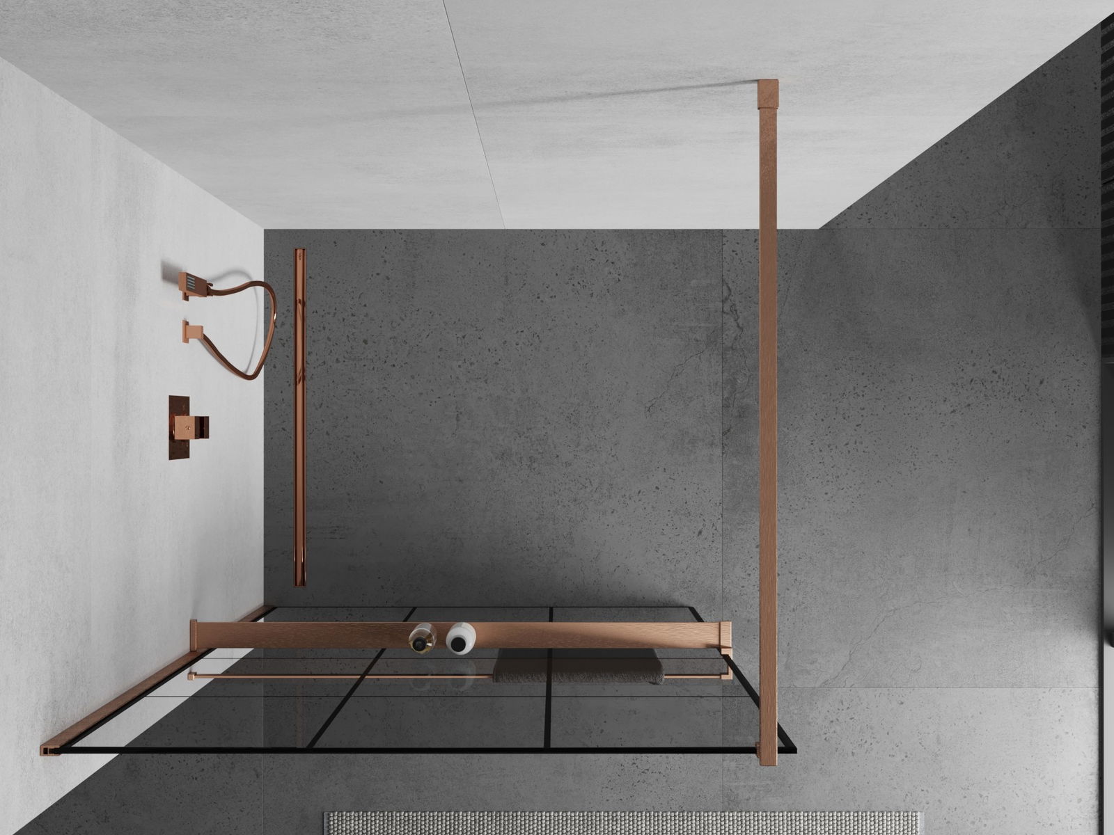 Mexen Kioto+ shower wall with shelf Walk-in 110 x 200 cm, black grid, brushed copper - 800-110-121-65-77