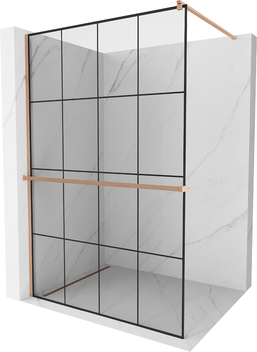 Mexen Kioto+ shower wall with shelf Walk-in 130 x 200 cm, black grid, brushed copper - 800-130-121-65-77