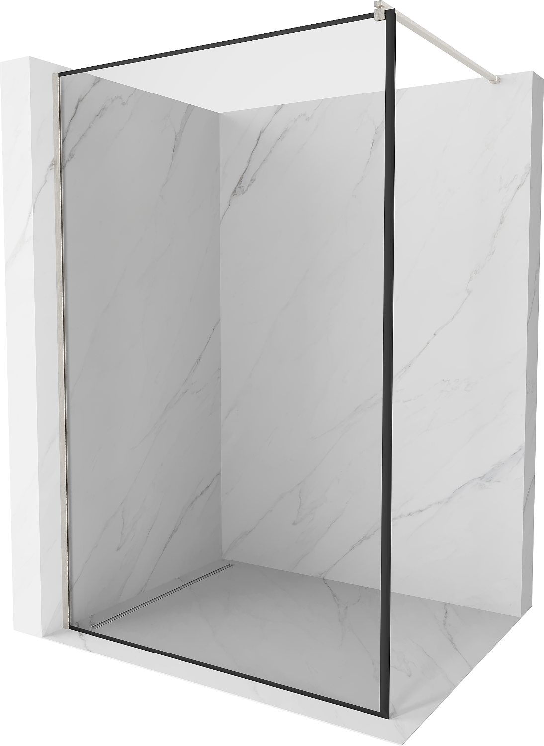 Mexen Kioto Walk-in Shower Wall 160 x 200 cm, Black Frame 8 mm, Brushed Nickel - 800-160-101-97-70