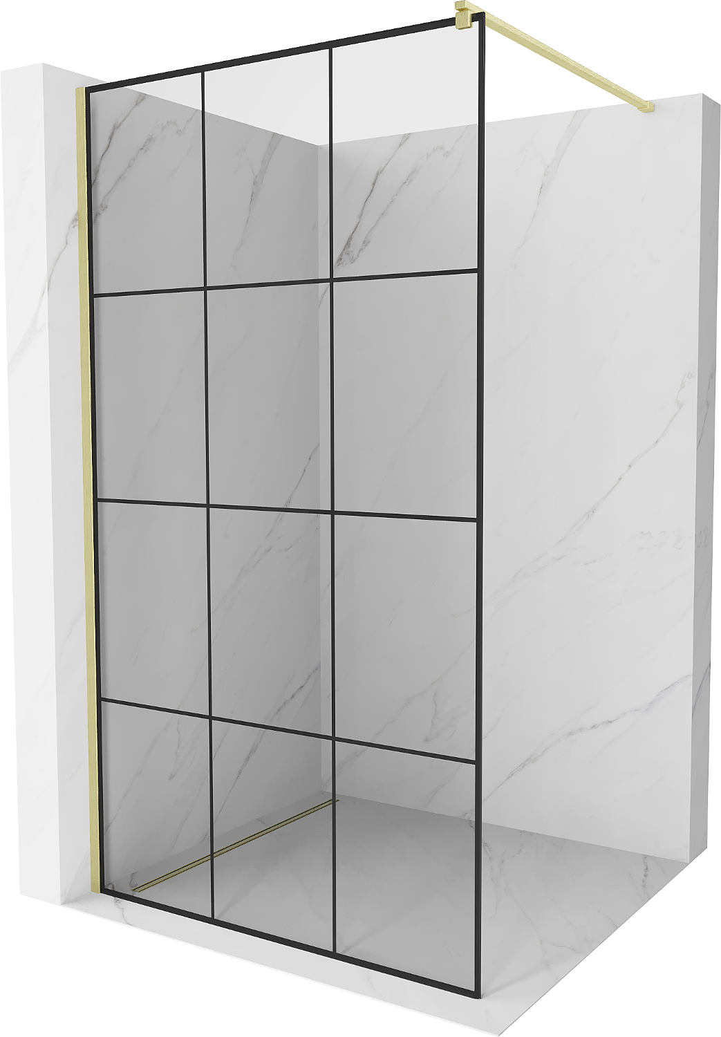 Mexen Kioto Walk-in shower wall 110 x 200 cm, black grid 8 mm, brushed gold - 800-110-101-55-77