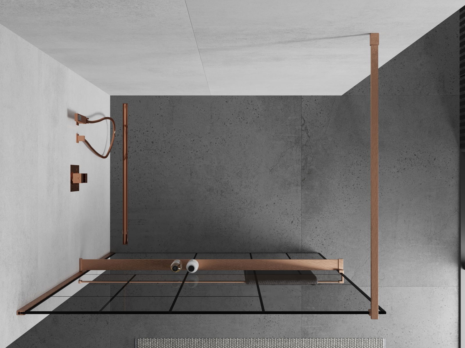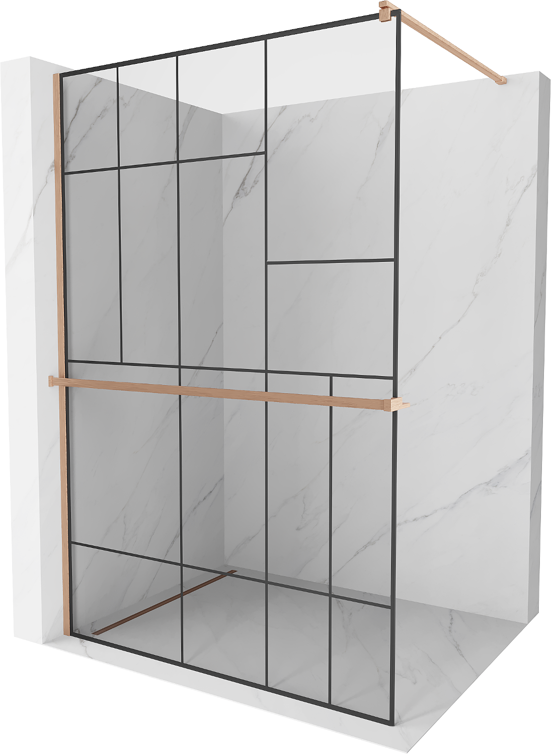 Mexen Kioto+ Walk-in Shower Screen with Shelf 90 x 200 cm, Black Pattern, Brushed Copper - 800-090-121-65-78
