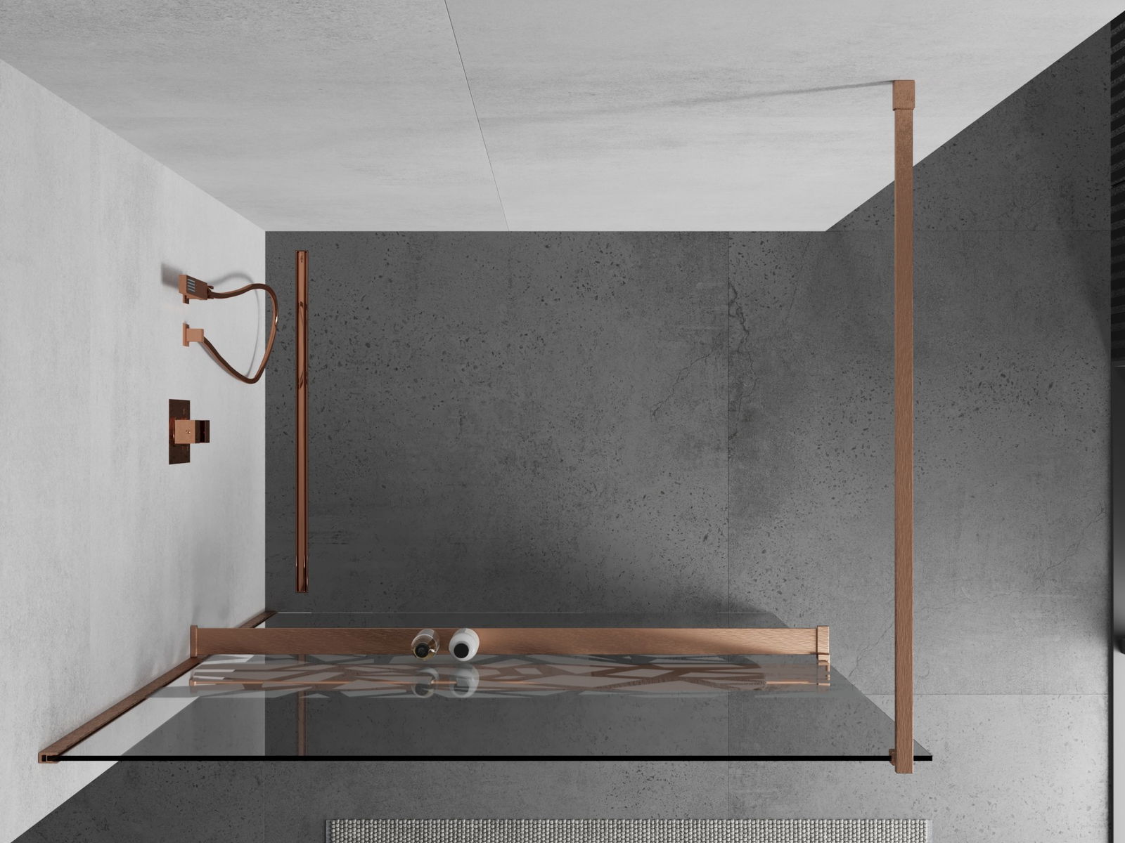 Mexen Kioto+ shower wall with shelf Walk-in 90 x 200 cm, white pattern, brushed copper - 800-090-121-65-85