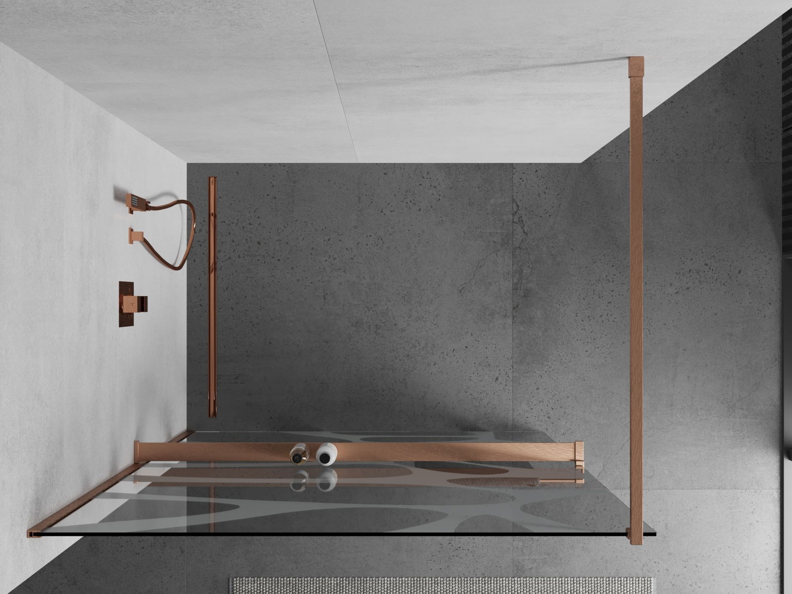 Mexen Kioto+ shower wall with shelf Walk-in 130 x 200 cm, white wave, brushed copper - 800-130-121-65-97