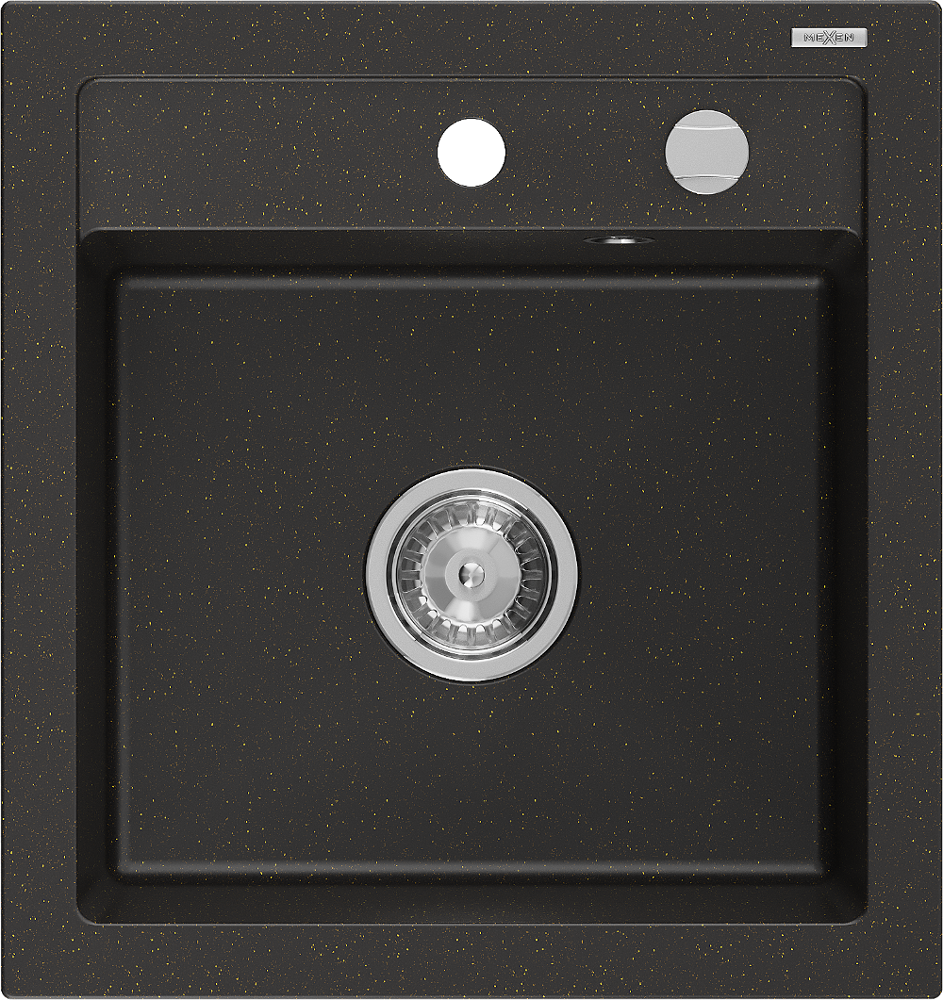 Mexen Vito granite kitchen sink 1-bowl 520 x 490 mm, black/gold metallic, chrome siphon - 6503521000-75