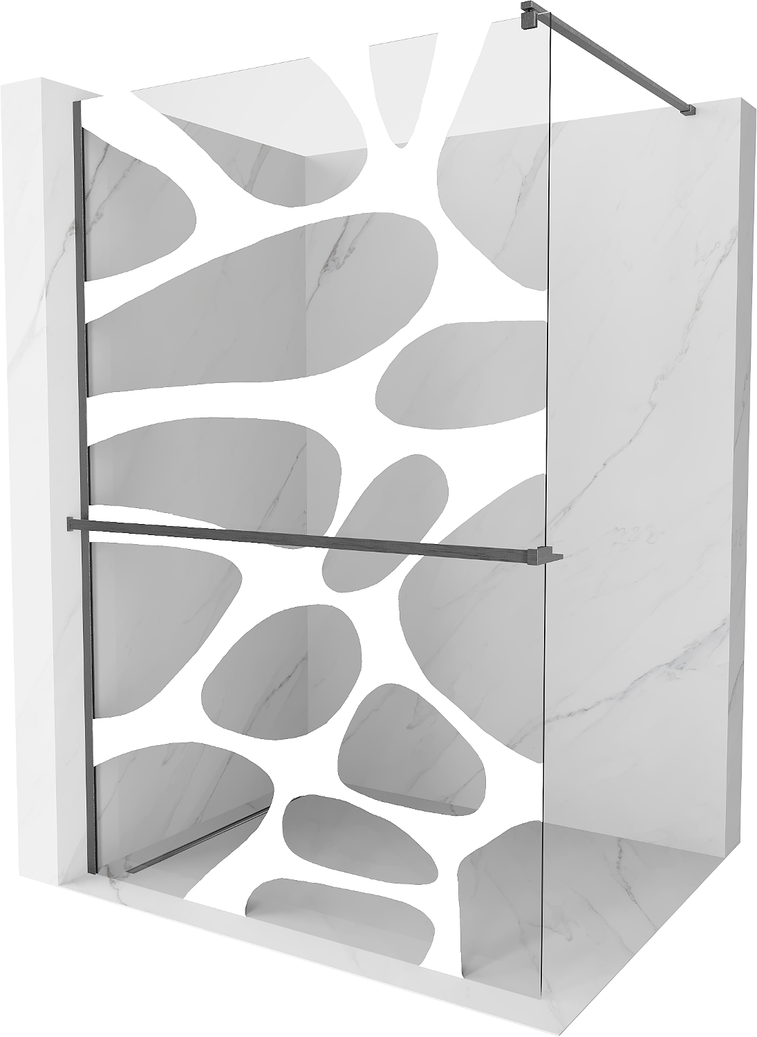 Mexen Kioto+ shower wall with shelf Walk-in 130 x 200 cm, white wave, gun gray brushed - 800-130-121-66-97