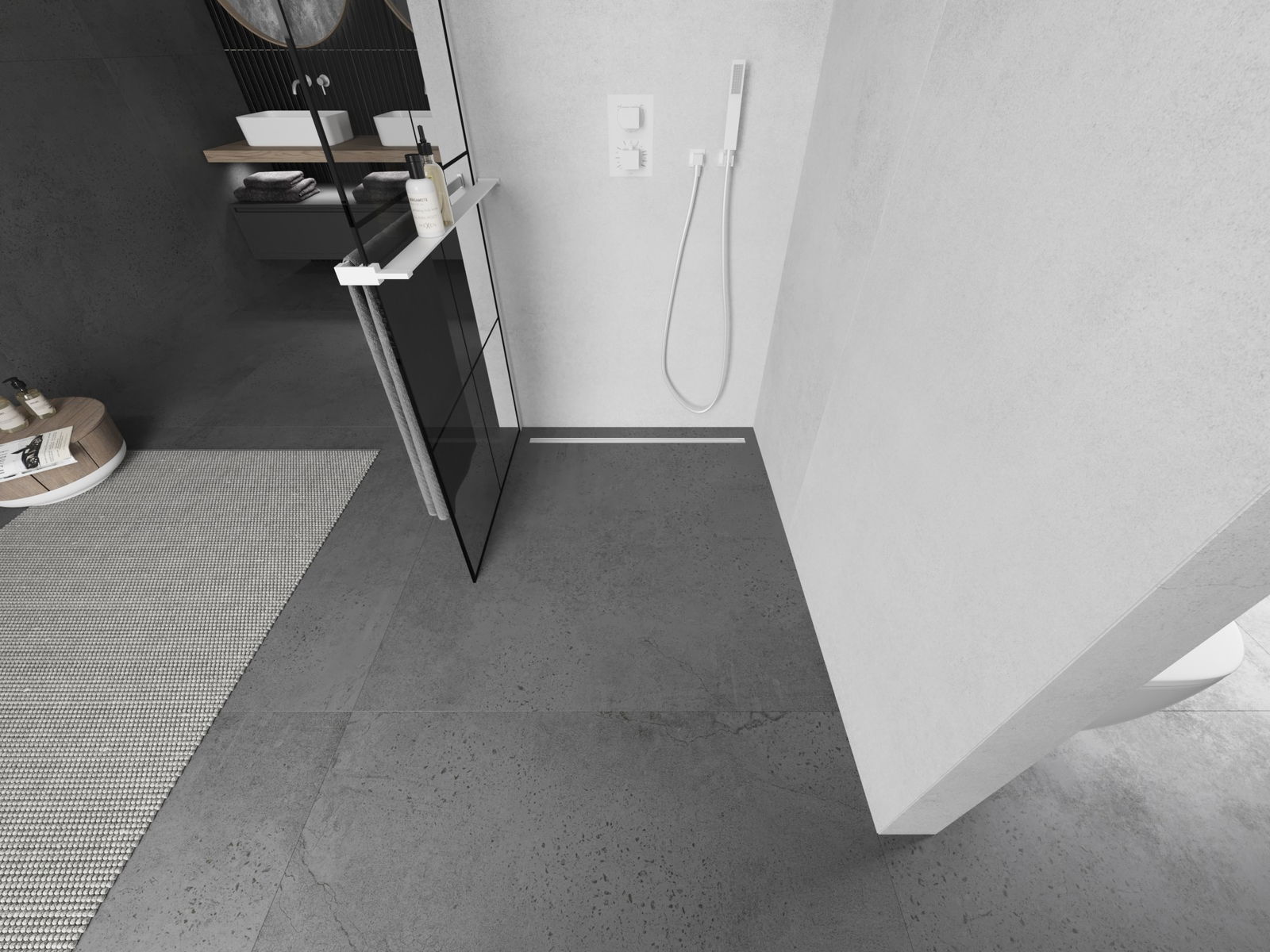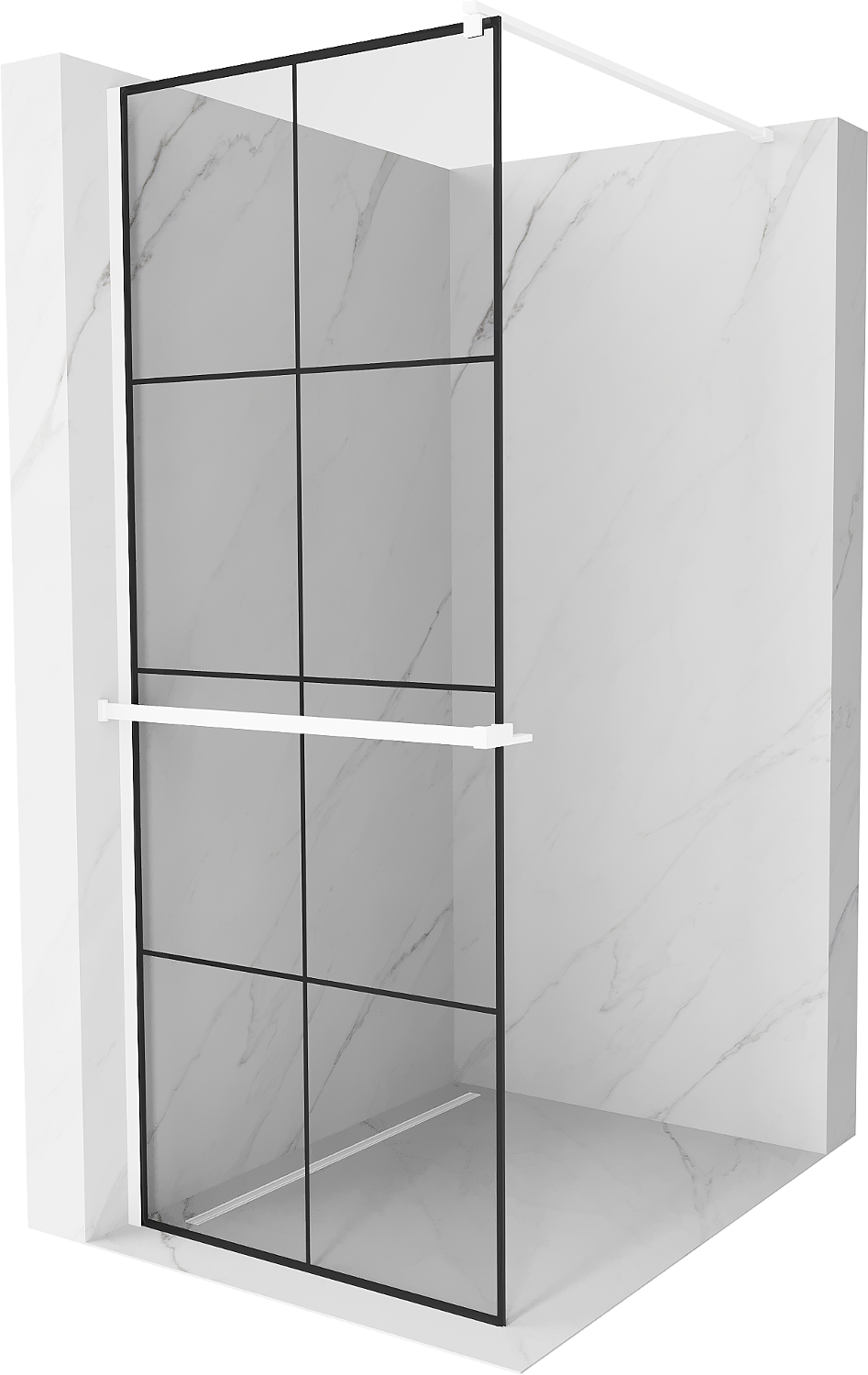 Mexen Kioto+ Shower wall with shelf Walk-in 80 x 200 cm, black grid, white - 800-080-121-20-77
