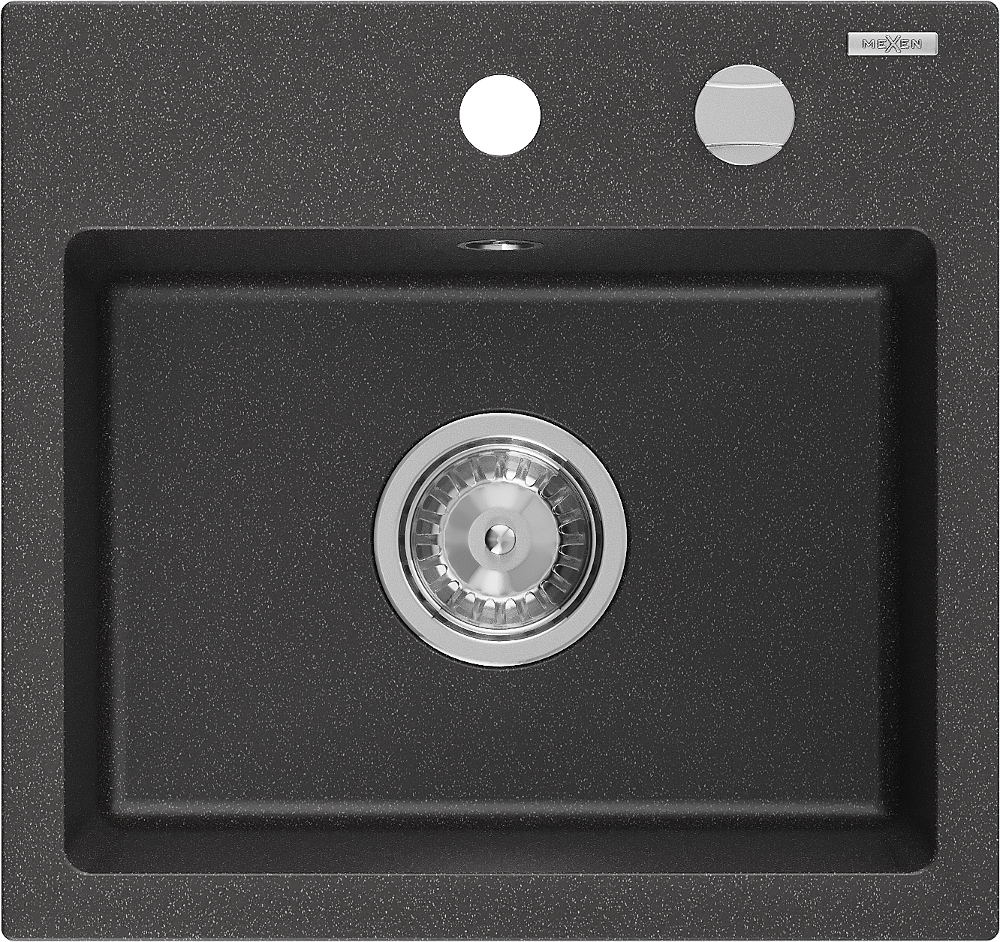 Mexen Milo granite sink 1-bowl 435 x 410 mm, black speckled, chrome siphon - 6505441000-76