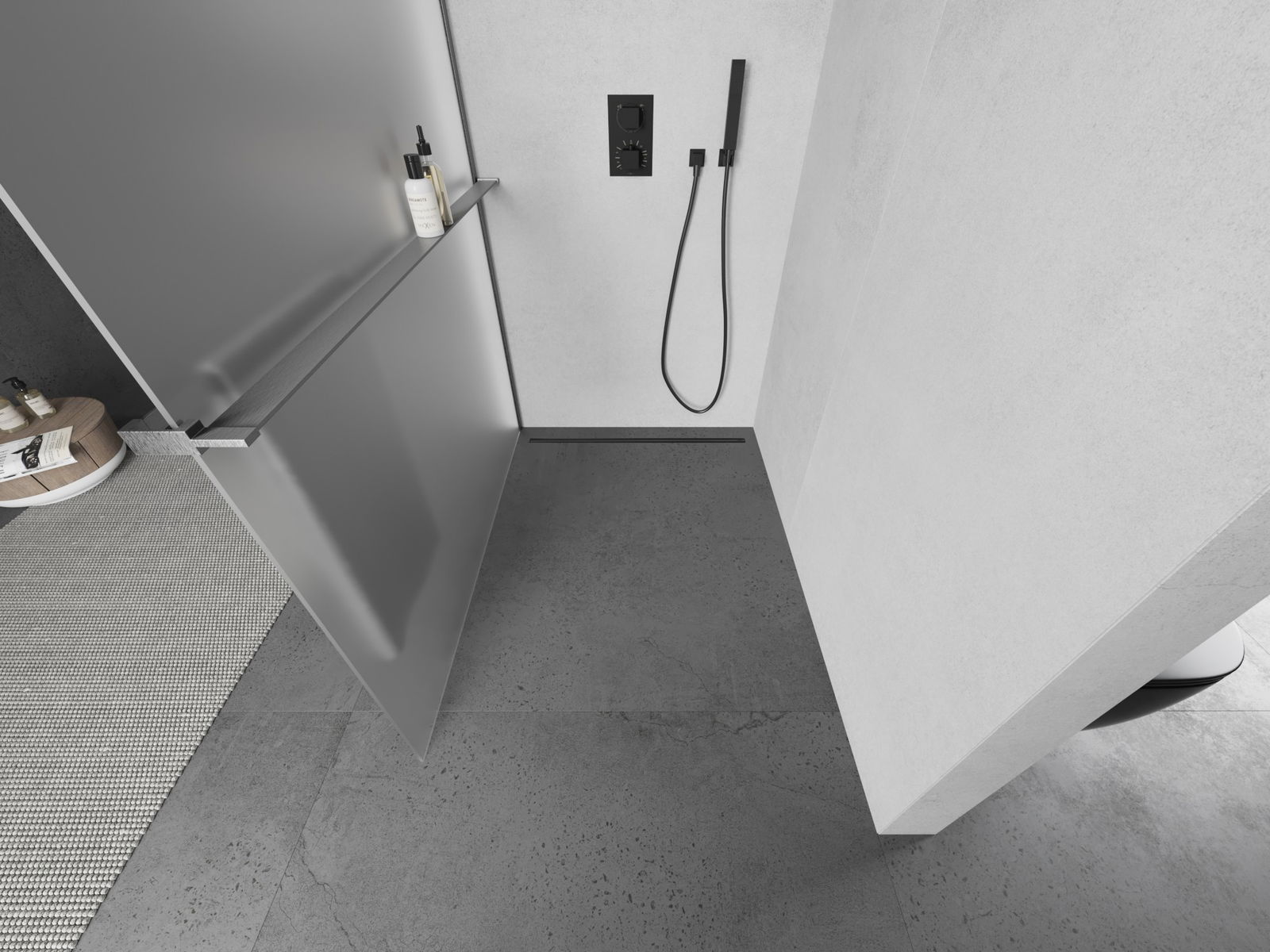 Mexen Kioto+ Shower Wall with Shelf Walk-in 70 x 200 cm, Frosted, Gun Metal - 800-070-121-95-30
