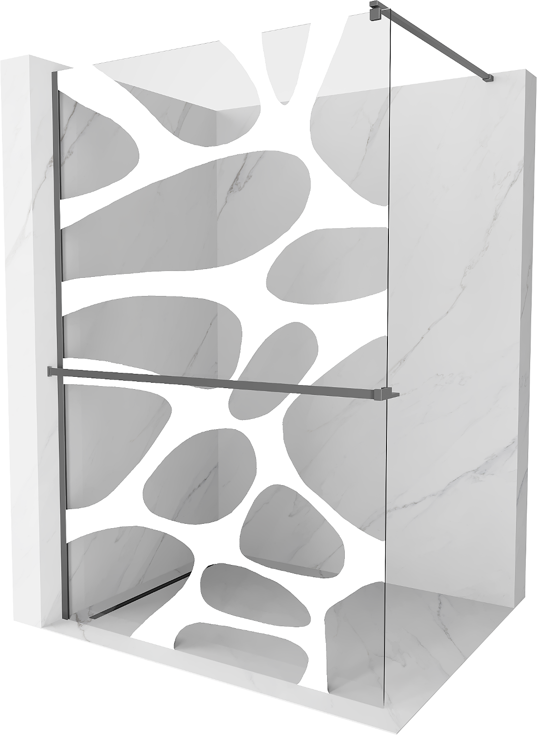 Mexen Kioto+ shower wall with Walk-in shelf 100 x 200 cm, white wave, gun metal - 800-100-121-95-97