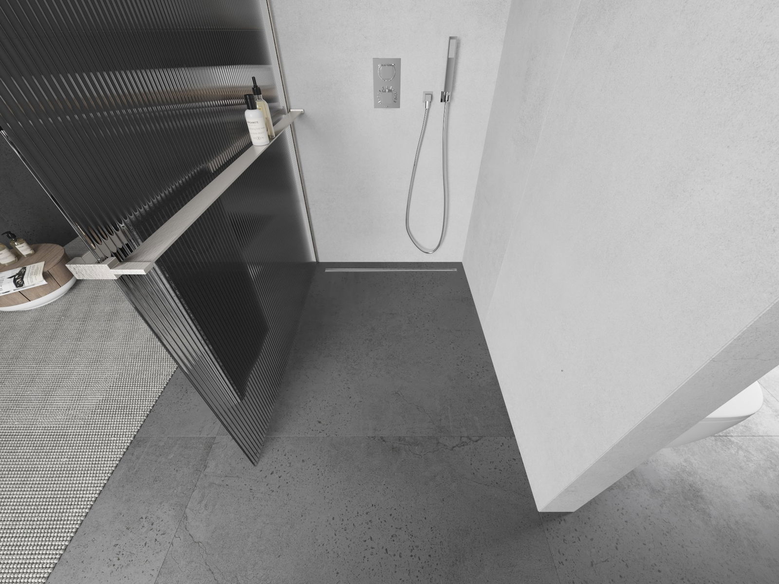 Mexen Kioto+ shower panel with shelf Walk-in 140 x 200 cm, stripes, brushed nickel - 800-140-121-97-09