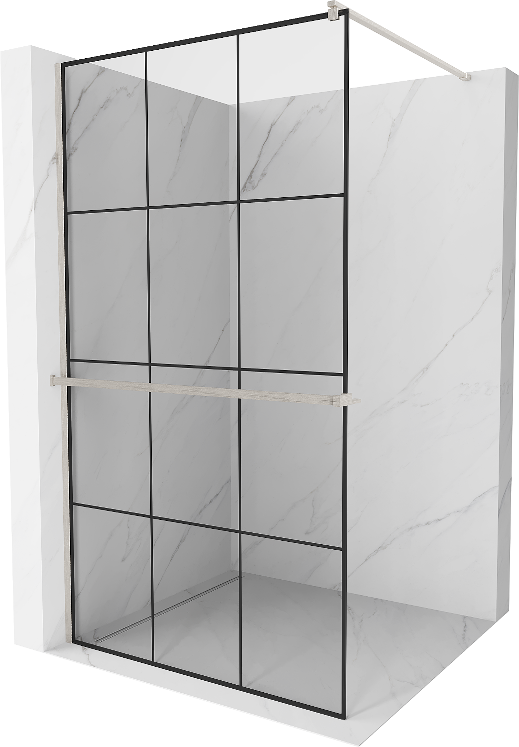 Mexen Kioto+ walk-in shower wall with shelf 100 x 200 cm, black grid, brushed nickel - 800-100-121-97-77