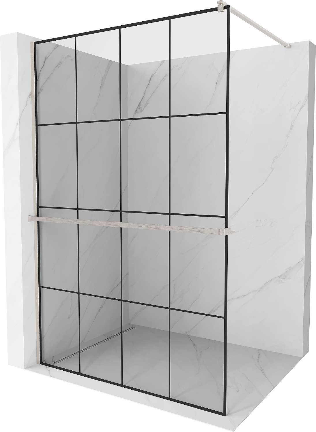 Mexen Kioto+ shower screen with shelf Walk-in 130 x 200 cm, black grid, brushed nickel - 800-130-121-97-77