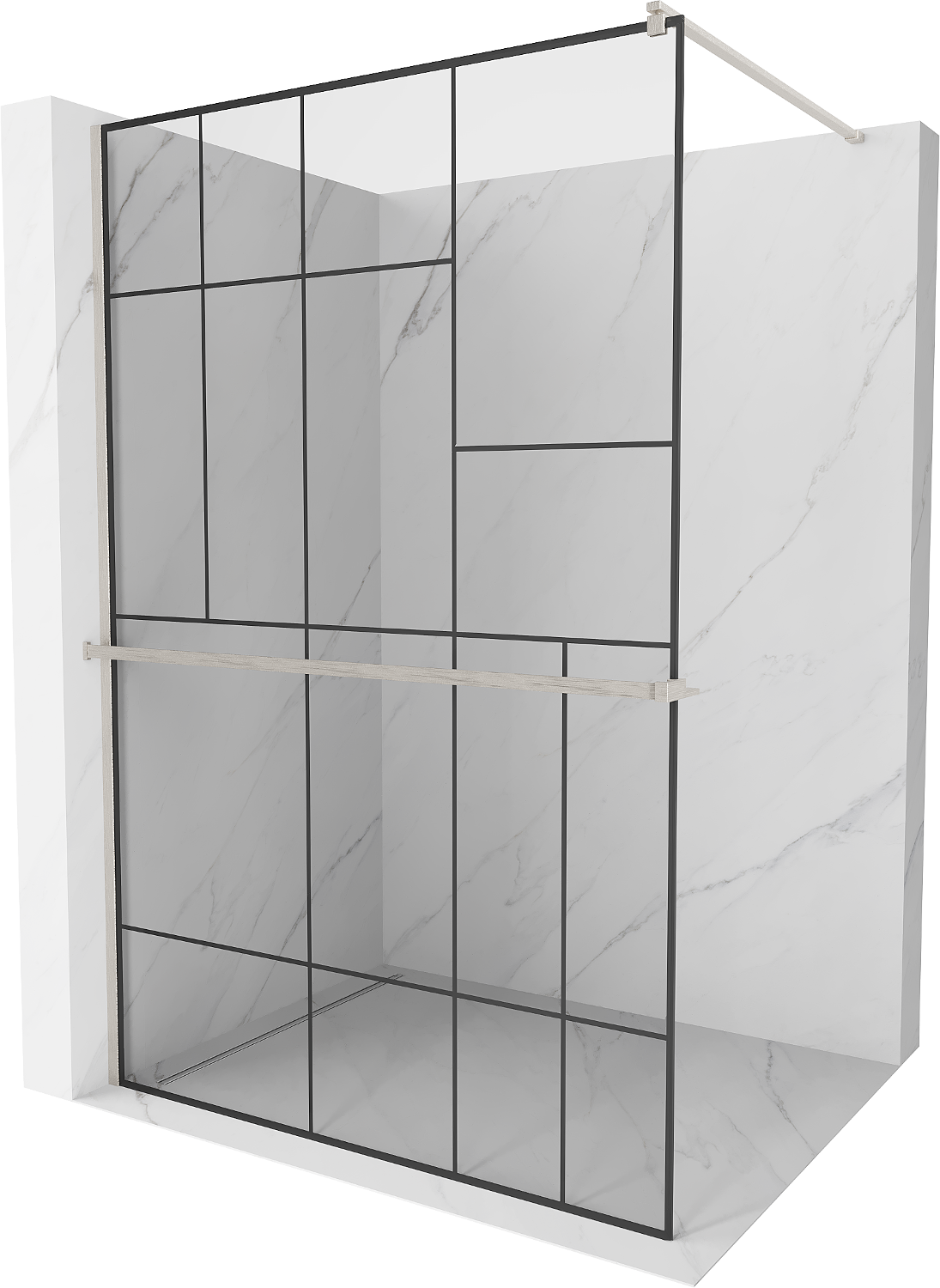 Mexen Kioto+ shower wall with shelf Walk-in 130 x 200 cm, black pattern, brushed nickel - 800-130-121-97-78