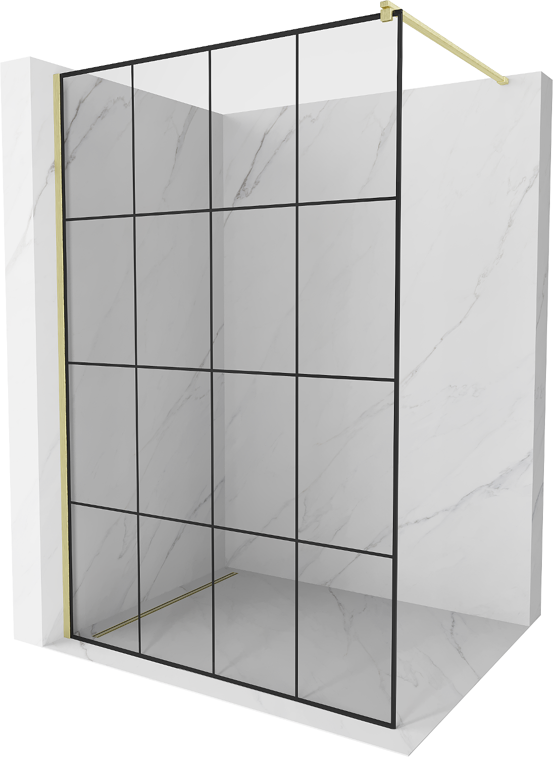Mexen Kioto Walk-in Shower Wall 160 x 200 cm, Black Grid 8 mm, Brushed Gold - 800-160-101-55-77