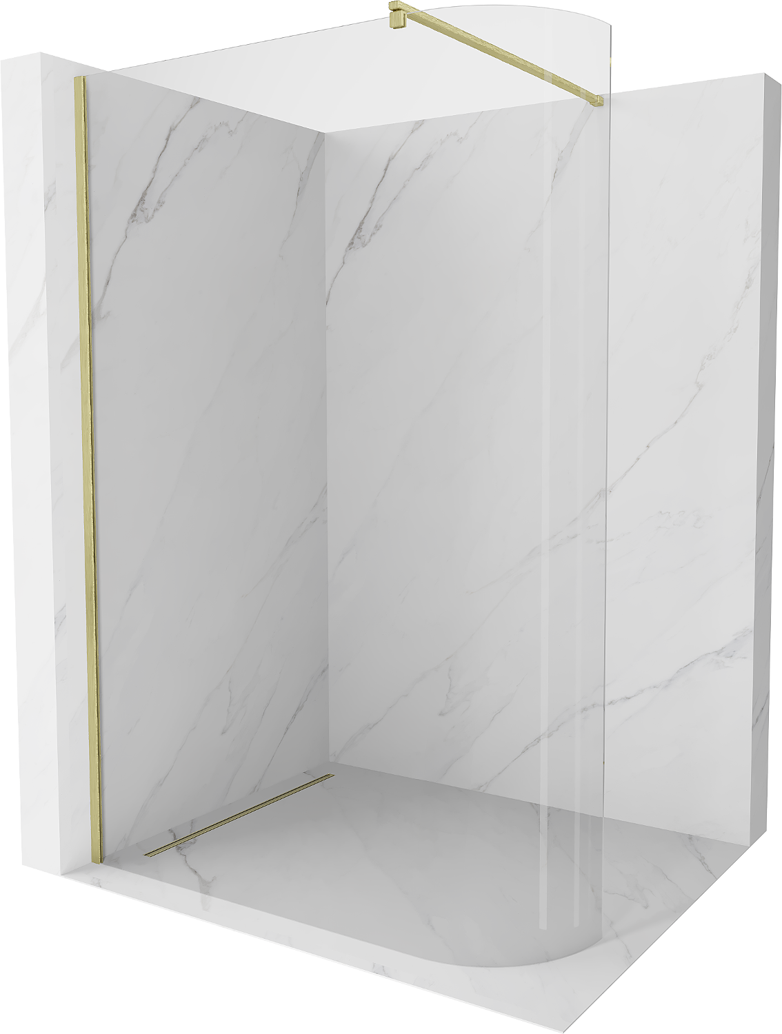 Mexen Kioto-R Walk-in Rounded Shower Wall 130 x 200 cm, Transparent 8 mm, Brushed Gold - 800-130-101-55-06