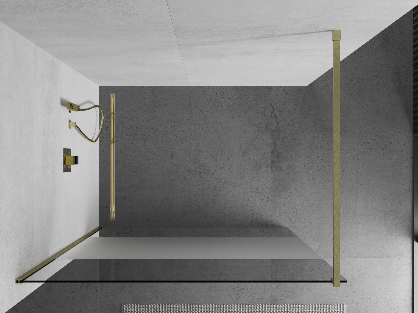 Mexen Kioto Walk-in Shower Wall 80 x 200 cm, Transparent/Frosted 8 mm, Brushed Gold - 800-080-101-55-35