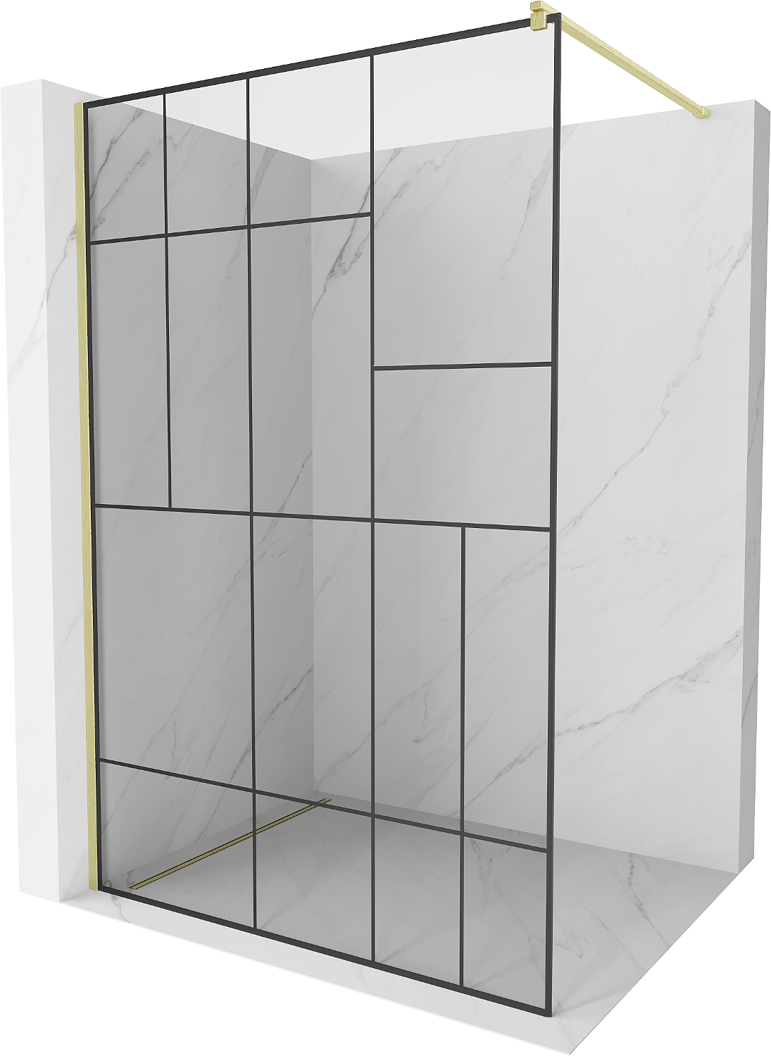 Mexen Kioto Shower Wall Walk-in 100 x 200 cm, black pattern 8 mm, brushed gold - 800-100-101-55-78