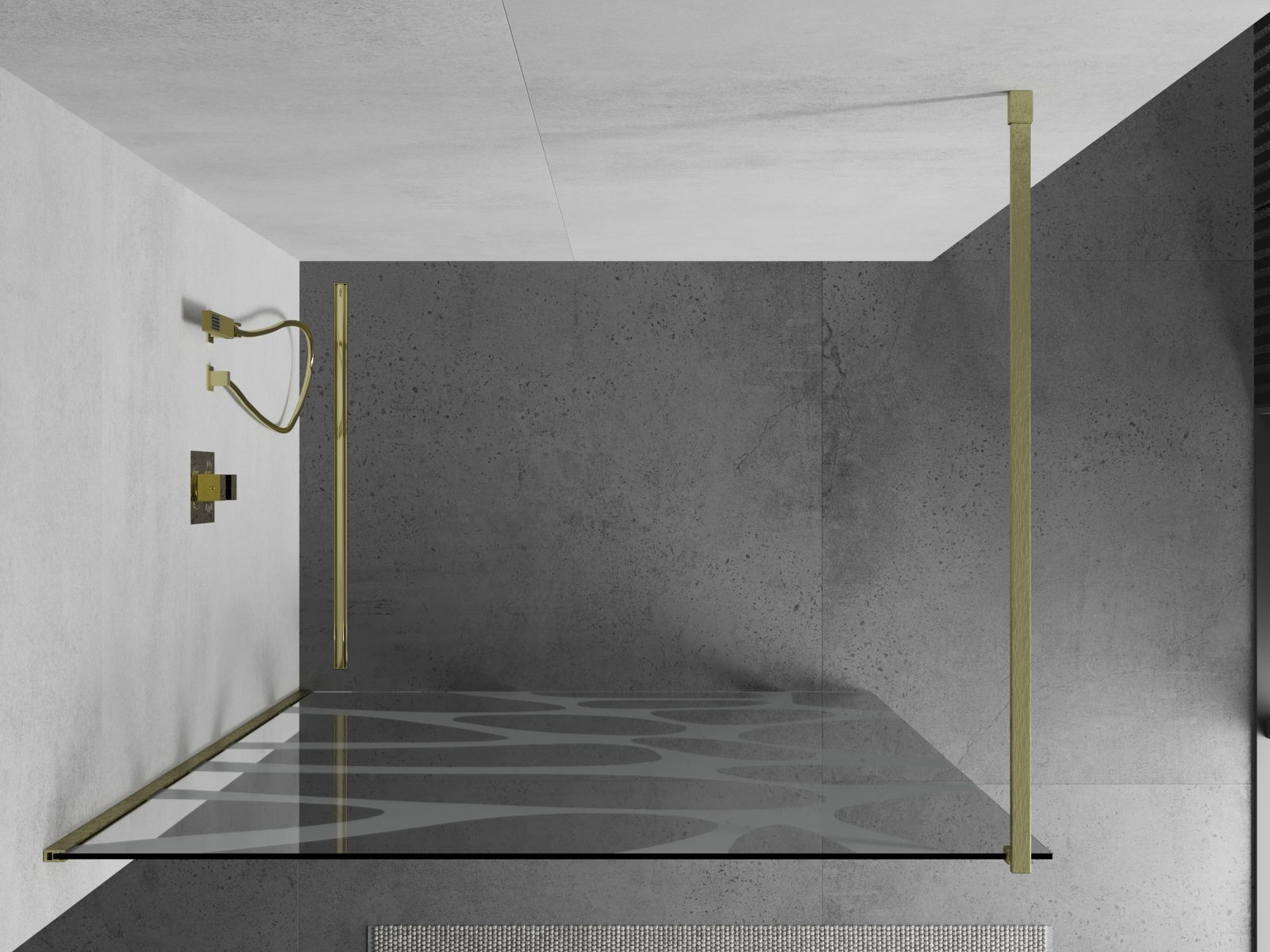 Mexen Kioto shower wall Walk-in 70 x 200 cm, white wave 8 mm, brushed gold - 800-070-101-55-97