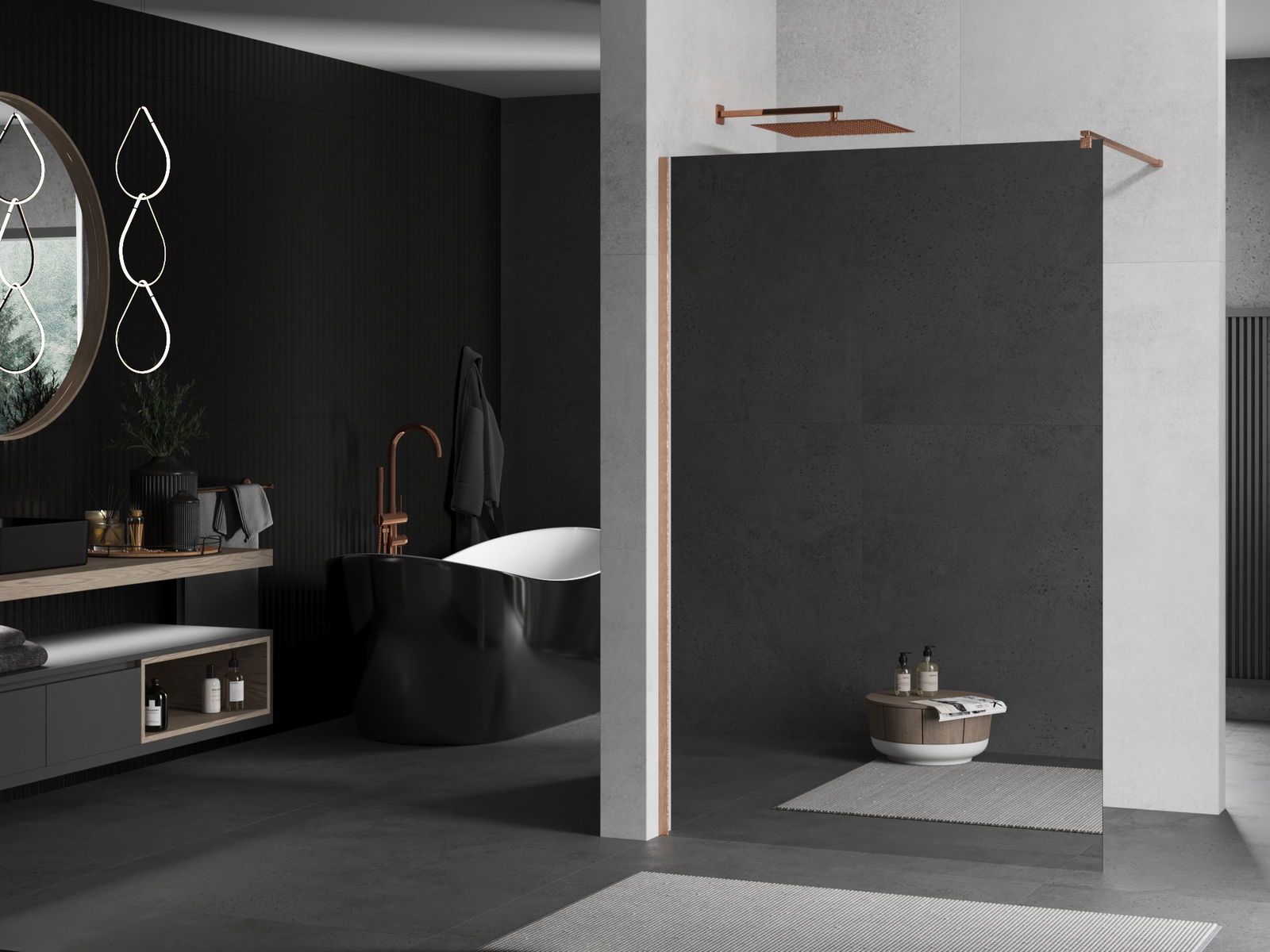 Mexen Kioto Walk-in Shower Wall 80 x 200 cm, Mirror 8 mm, Brushed Copper - 800-080-101-65-50