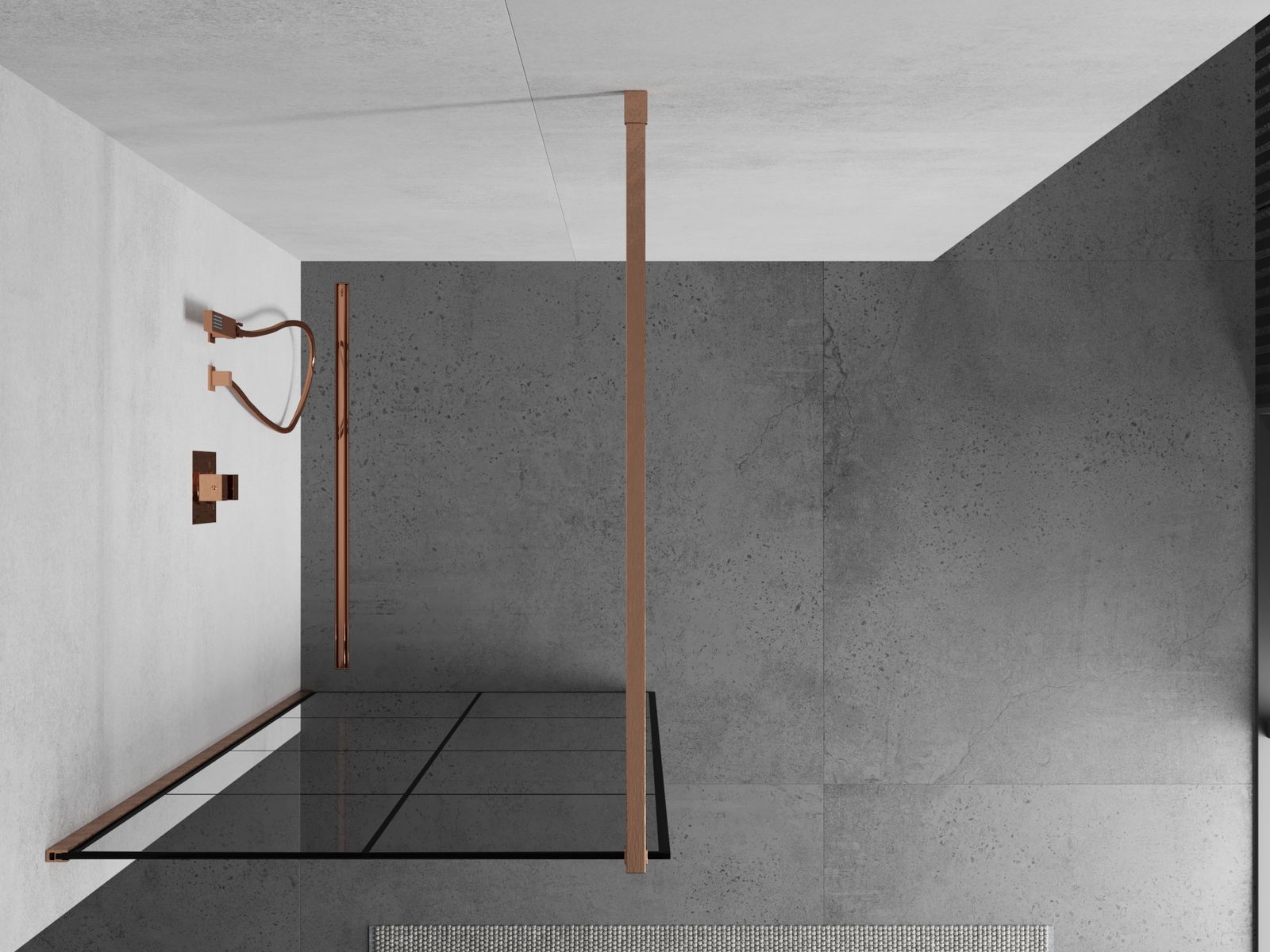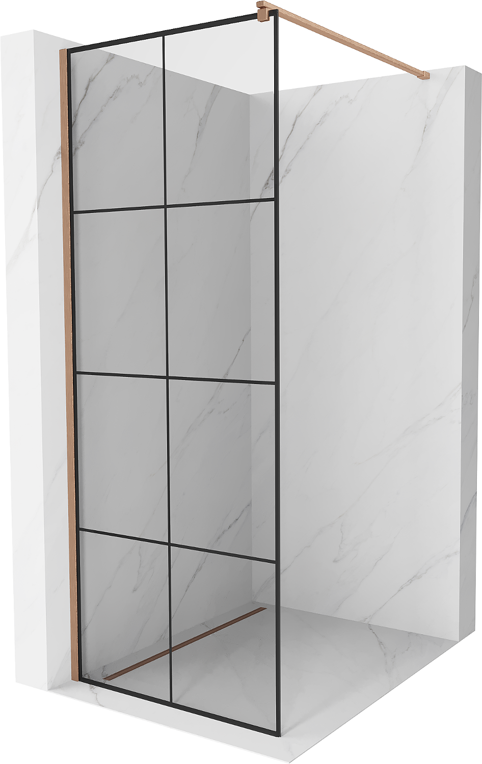 Mexen Kioto Walk-in Shower Screen 80 x 200 cm, Black Grid 8 mm, Brushed Copper - 800-080-101-65-77
