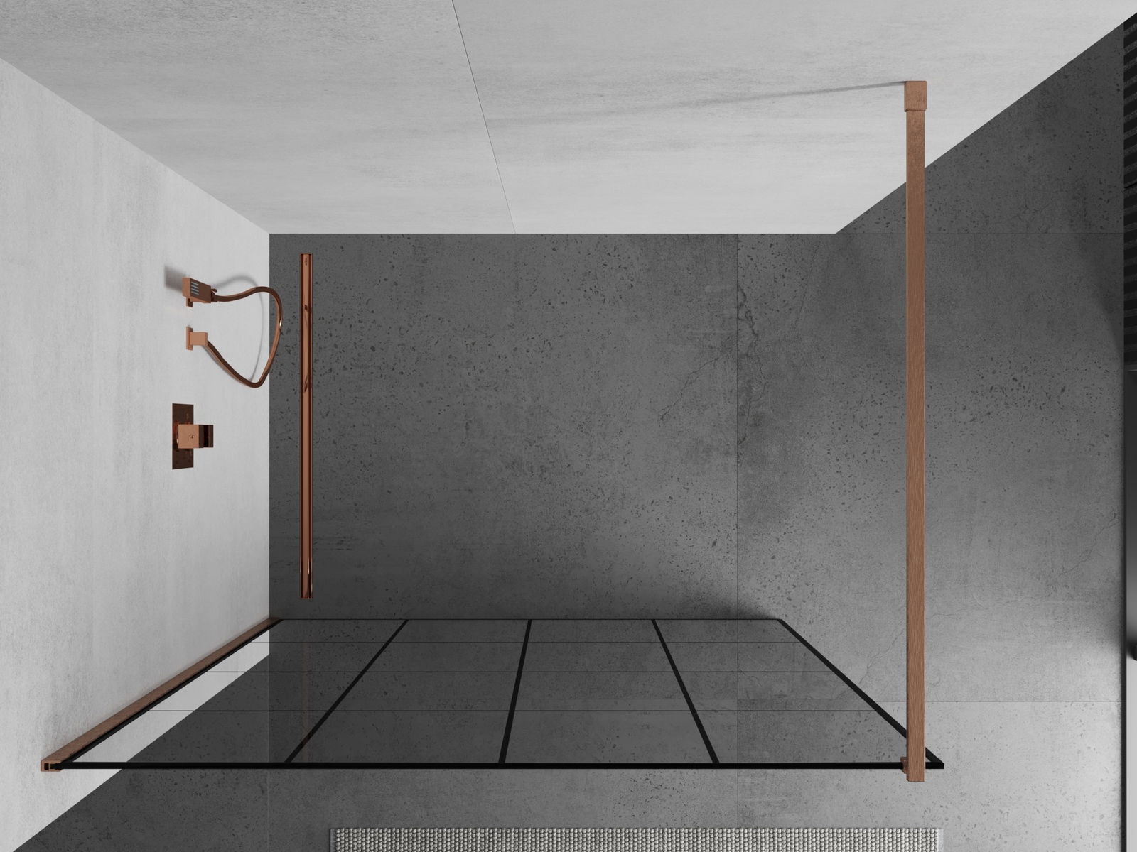 Mexen Kioto Shower Wall Walk-in 150 x 200 cm, Black Grid 8 mm, Brushed Copper - 800-150-101-65-77
