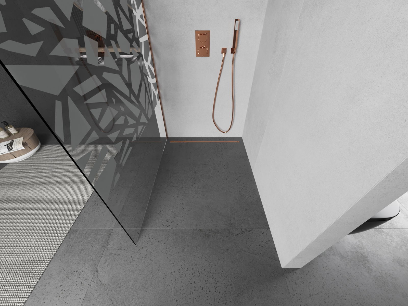 Mexen Kioto Walk-in Shower Wall 130 x 200 cm, White Pattern 8 mm, Brushed Copper - 800-130-101-65-85