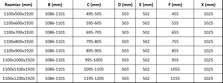 Size: 110x120 cm (door 110 cm, wall 120 cm)