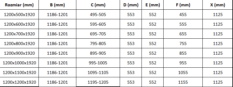 Size: 120x110 cm (door 120 cm, wall 110 cm)