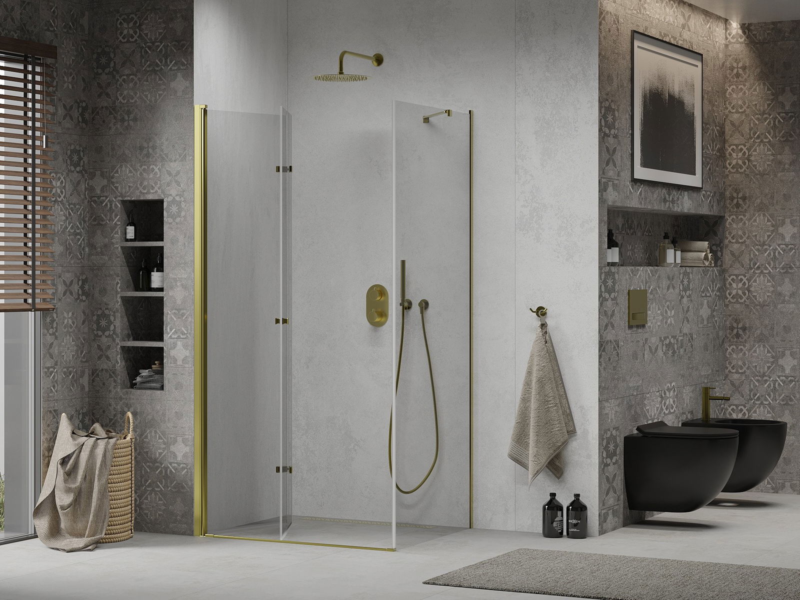 Mexen Lima folding shower enclosure 80 x 100 cm, transparent, gold - 856-080-100-50-00