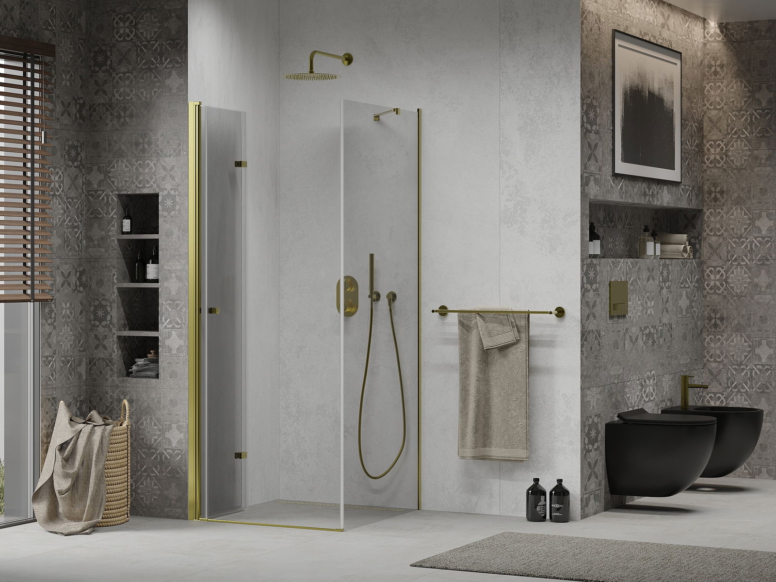 Mexen Lima 90 x 90 cm Folding Shower Enclosure, Transparent, Gold - 856-090-090-50-00