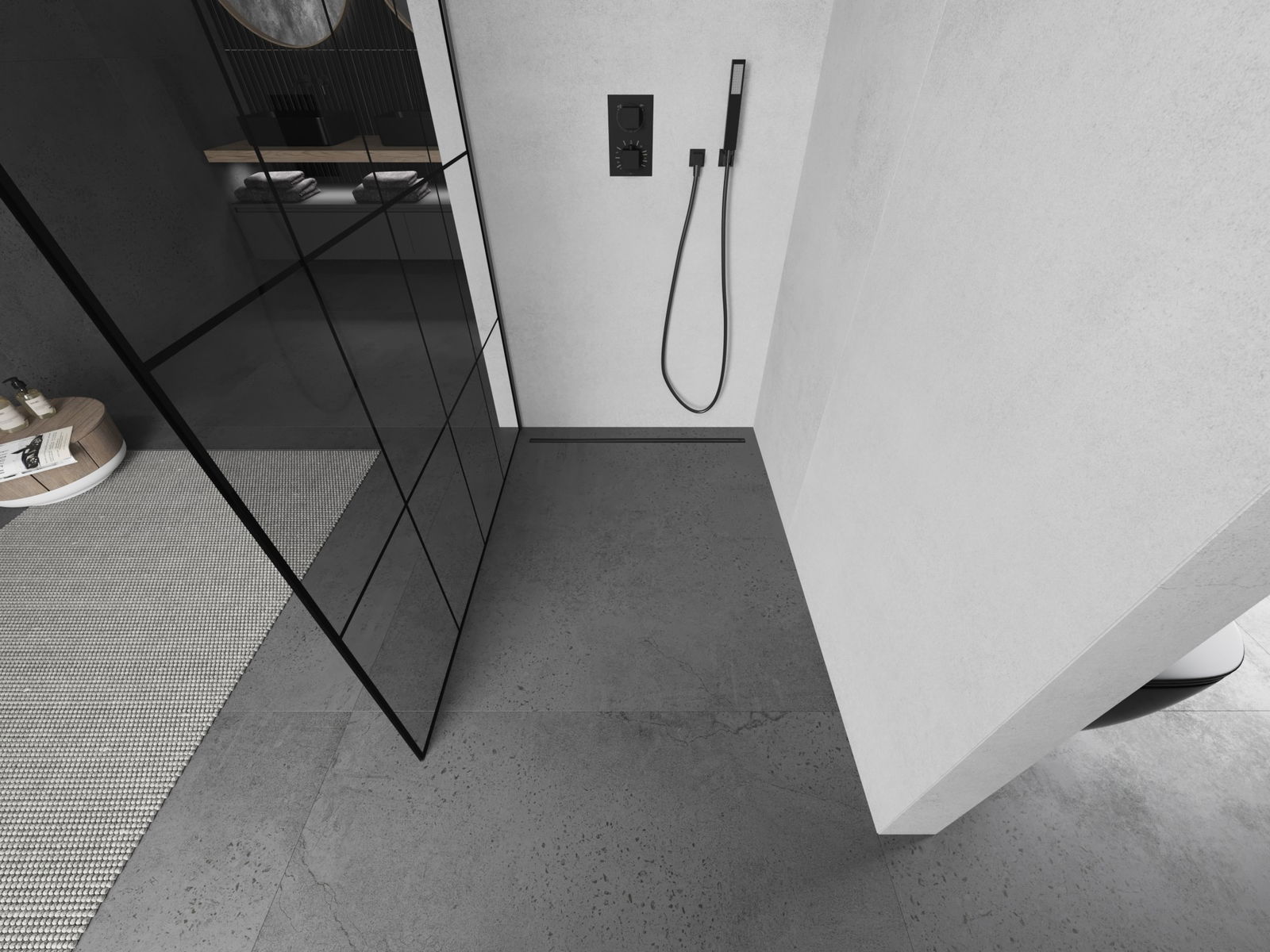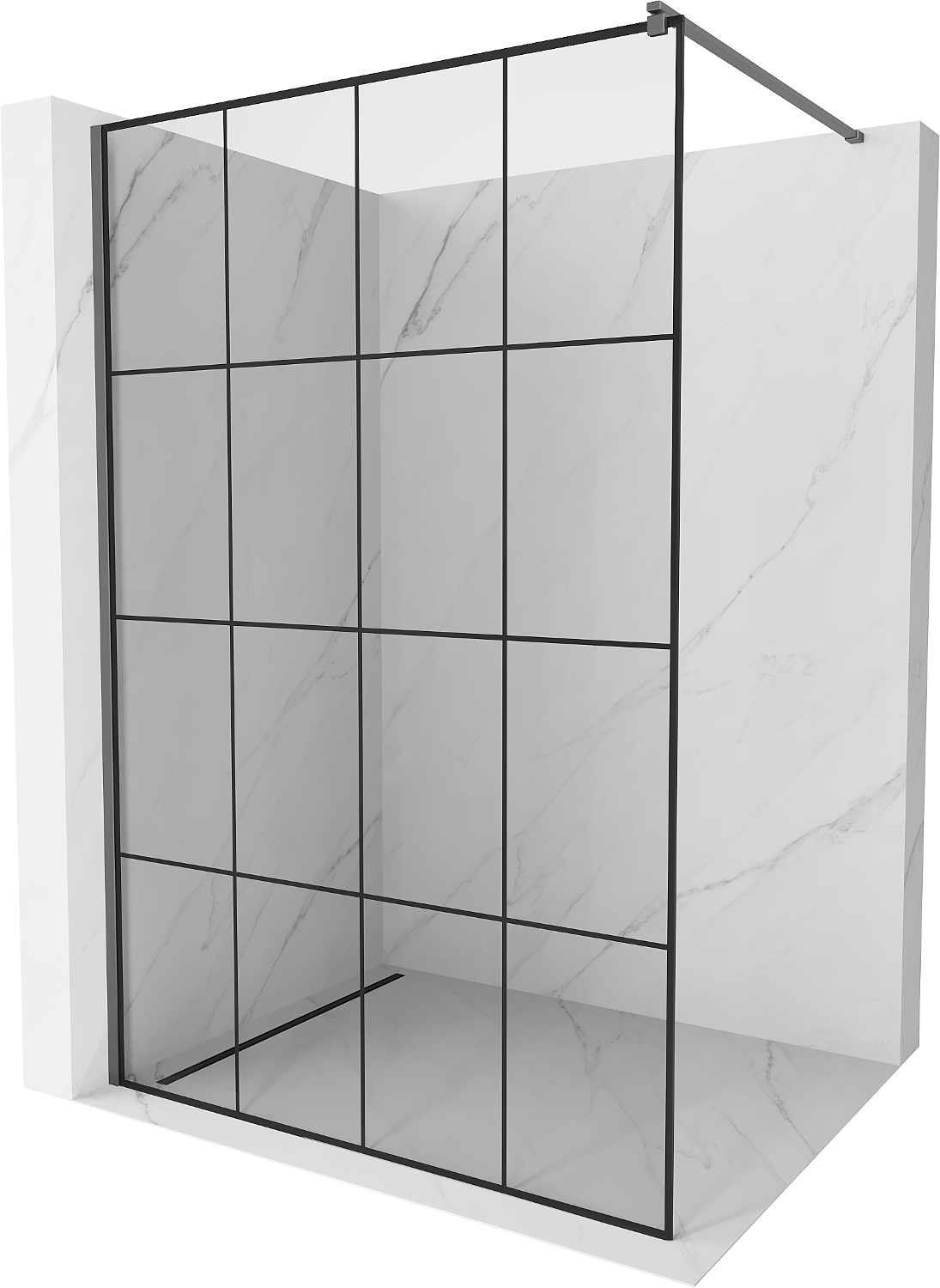 Mexen Kioto Walk-in Shower Wall 140 x 200 cm, Black Grid 8 mm, Gun Metal - 800-140-101-95-77