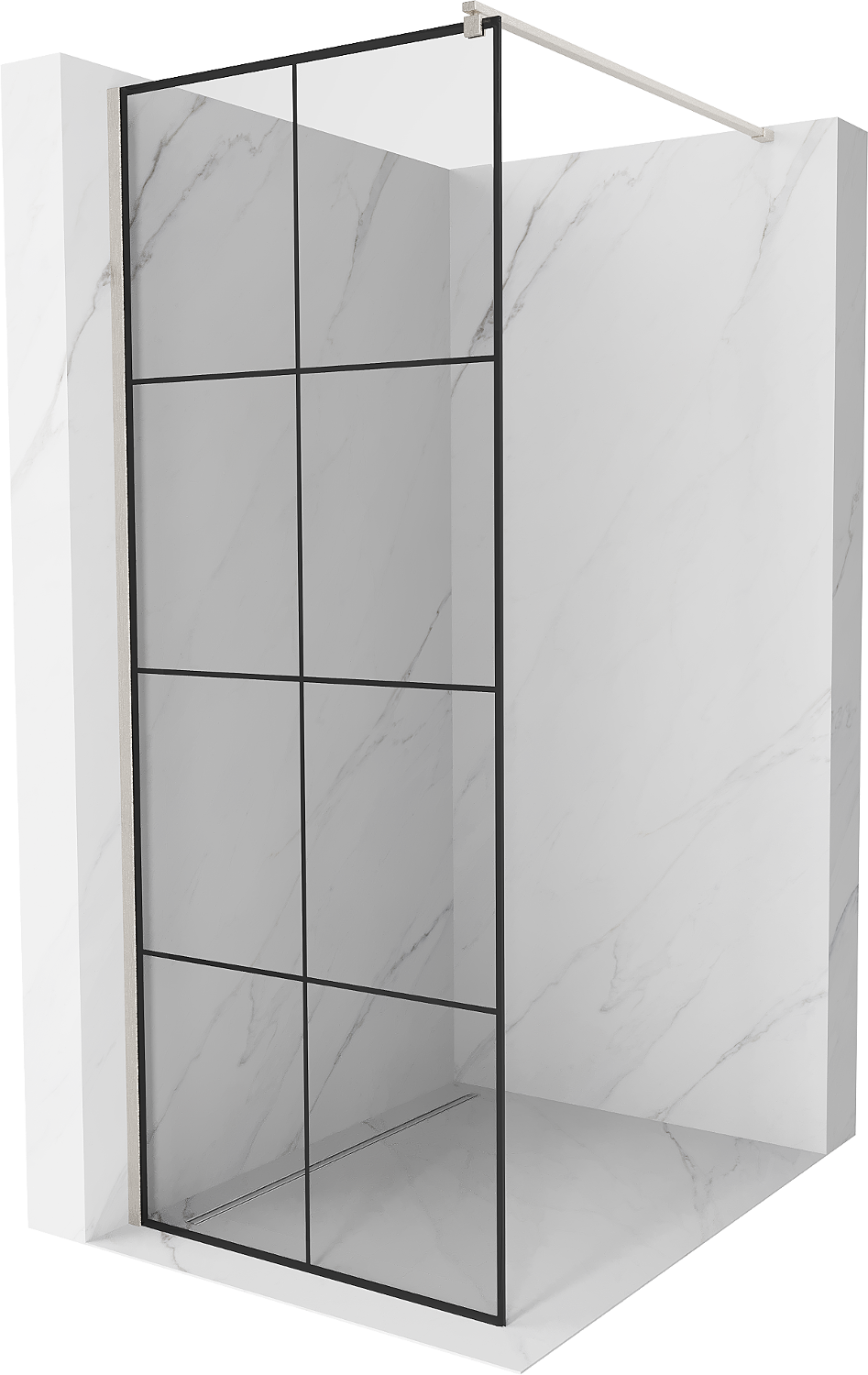 Mexen Kioto Walk-in Shower Wall 90 x 200 cm, Black Grid 8 mm, Brushed Nickel - 800-090-101-97-77