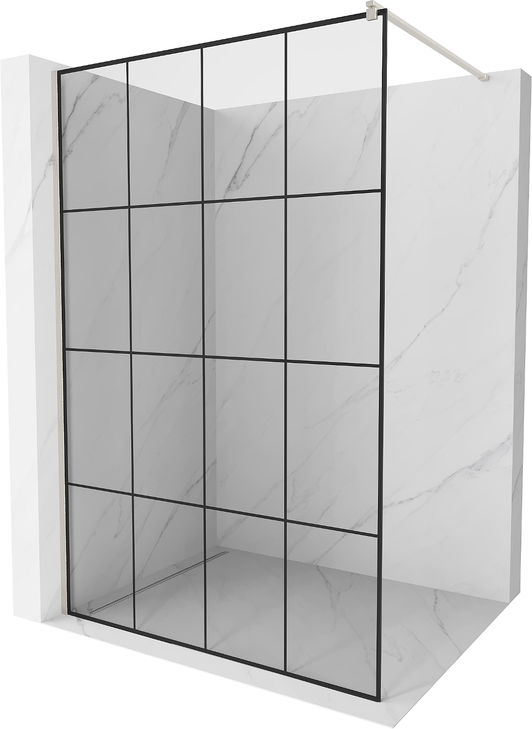 Mexen Kioto Walk-in Shower Panel 150 x 200 cm, Black Grid 8 mm, Brushed Nickel - 800-150-101-97-77