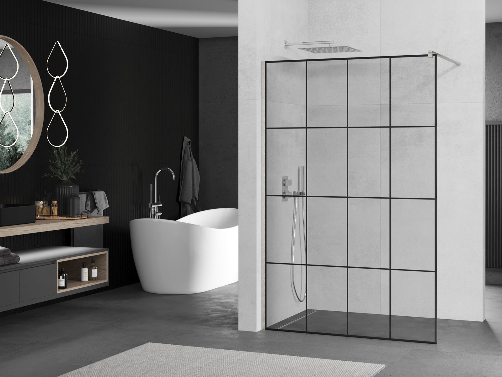 Mexen Kioto Walk-in Shower Screen 160 x 200 cm, Black Grid 8 mm, Brushed Nickel - 800-160-101-97-77