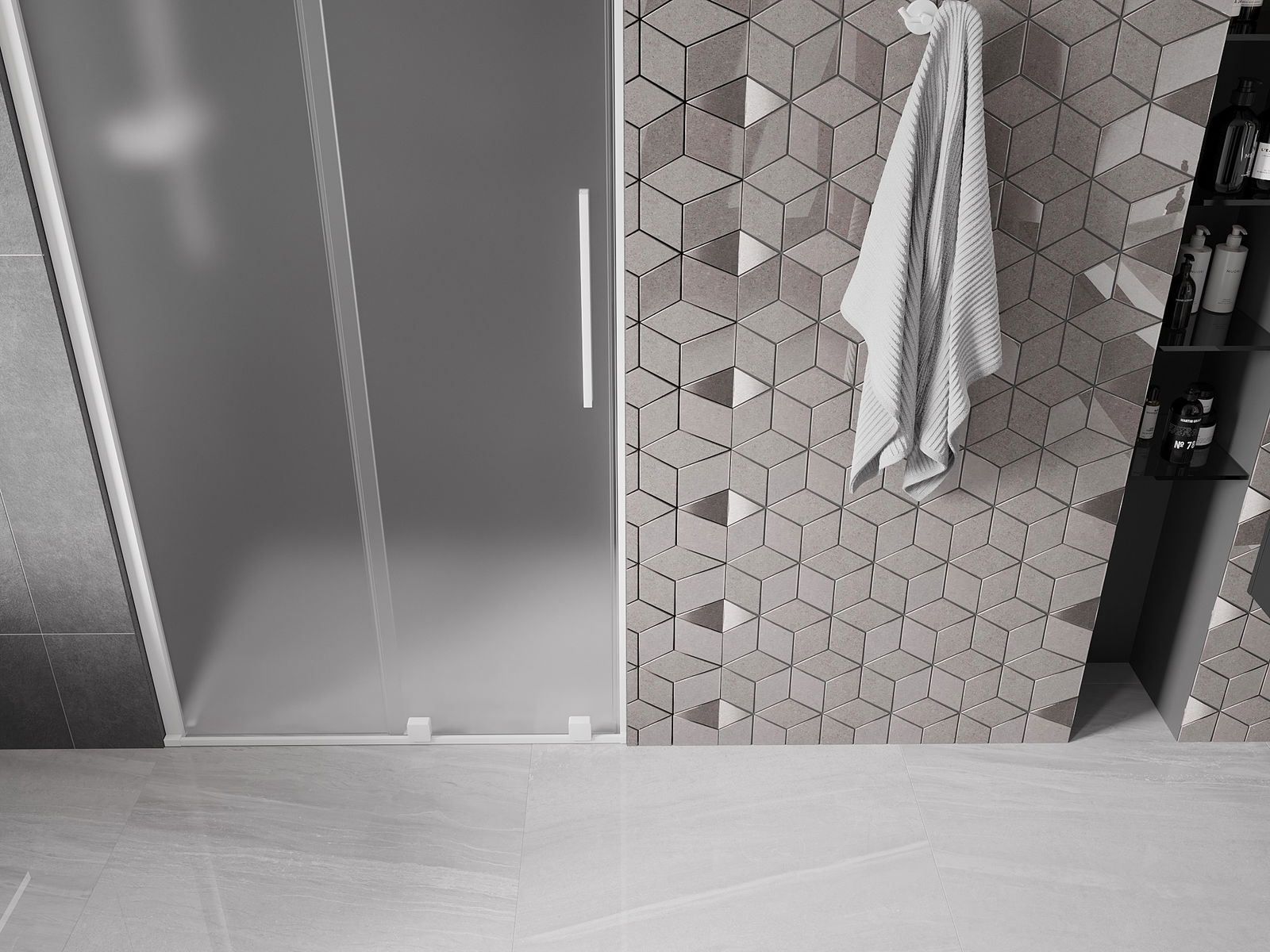 Mexen Velar 90 cm sliding shower doors, frosted, white - 871-090-000-31-20